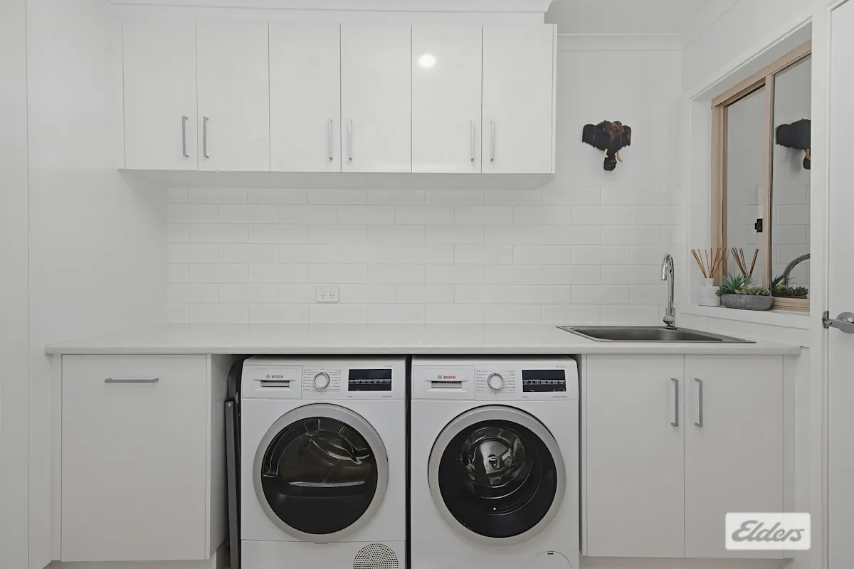 The décor is warm and neutral, complemented by premium laminate flooring ideal for busy family living. A 6.6kW solar system helps reduce running costs, and the ducted refrigerated heating and cooling, controlled via wall tablet or smart device app, keeps the home perfectly temperate year round. Silver tinted windows further enhance privacy and energy efficiency.