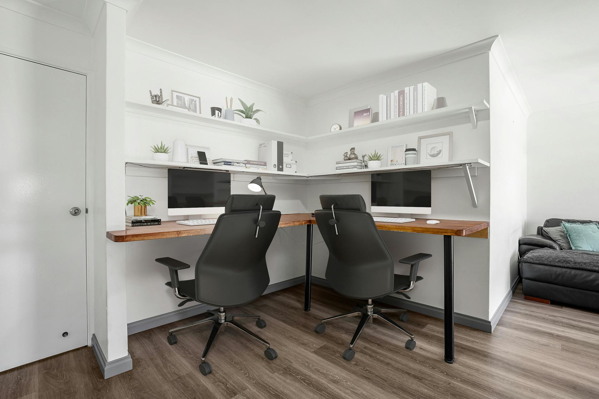 A lengthy driveway extends to the double carport with roller door, while a large hardstand sits to the front of the home, before your inviting garden, with a limestone wall separating the area from the street. Your second hardstand is nestled to the side of the carport, ensuring ample parking potential, while a range of greenery and easy care synthetic lawn ensures an appealing entry into the home. A light filled lounge awaits to the front, with the timber laminate flooring that extends throughout the property and a cooling ceiling fan, with a study or home office space placed just beyond, including an in-built corner desk and open shelving. Your generous master suite also sits to the front of the home, with a large window to enjoy those garden views, and plenty of space for a seating area within, while another ceiling fan ensures your well-being, with a walk-in robe and fully renovated ensuite with floor to ceiling tiling, a glass shower enclosure, vanity and WC.