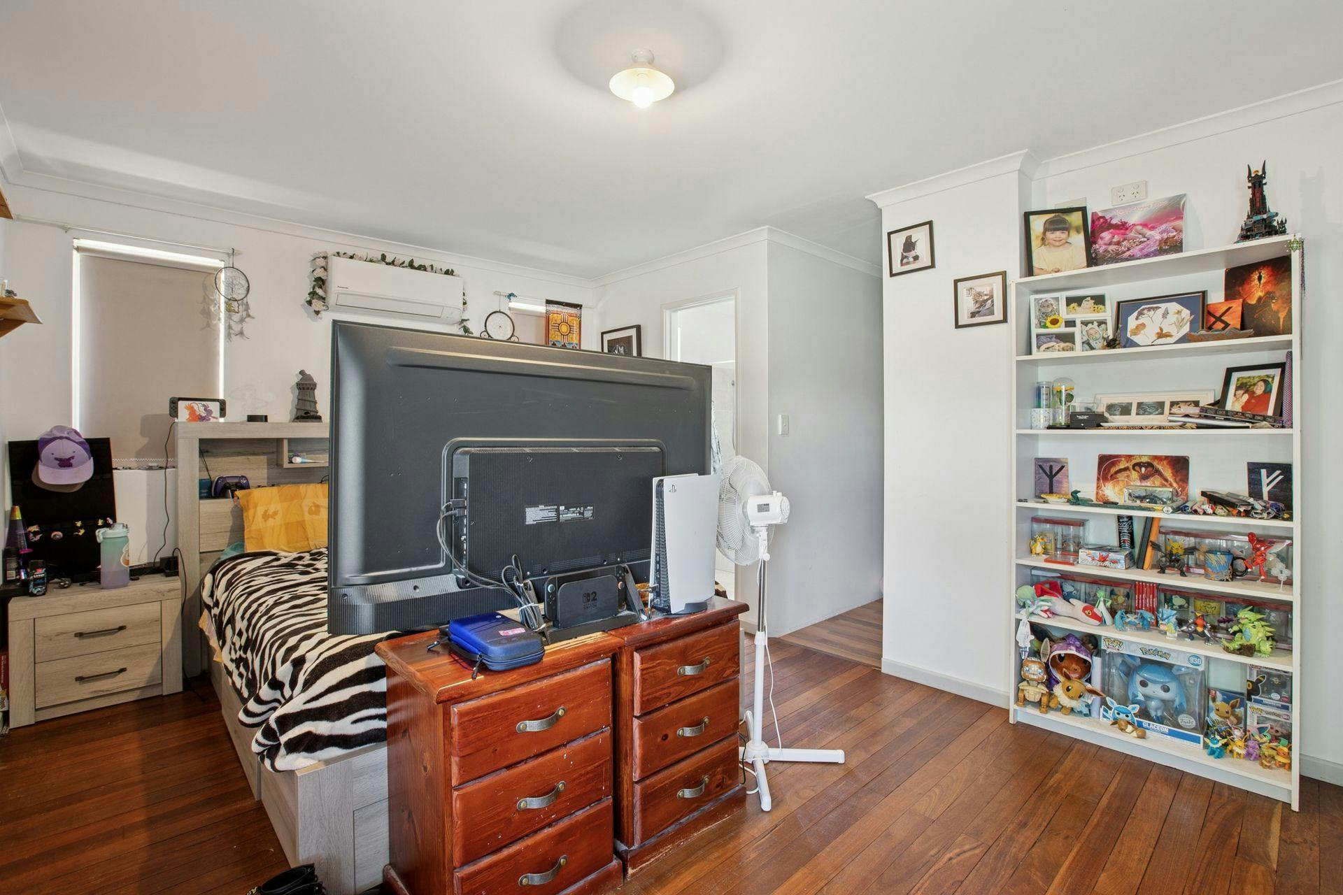 - Oversized master suite to the left of entry, with solid timber flooring, an efficient split system air conditioning unit and plenty of room for a retreat area within, plus a walk-in robe for storage and an ensuite with a shower, vanity and WC