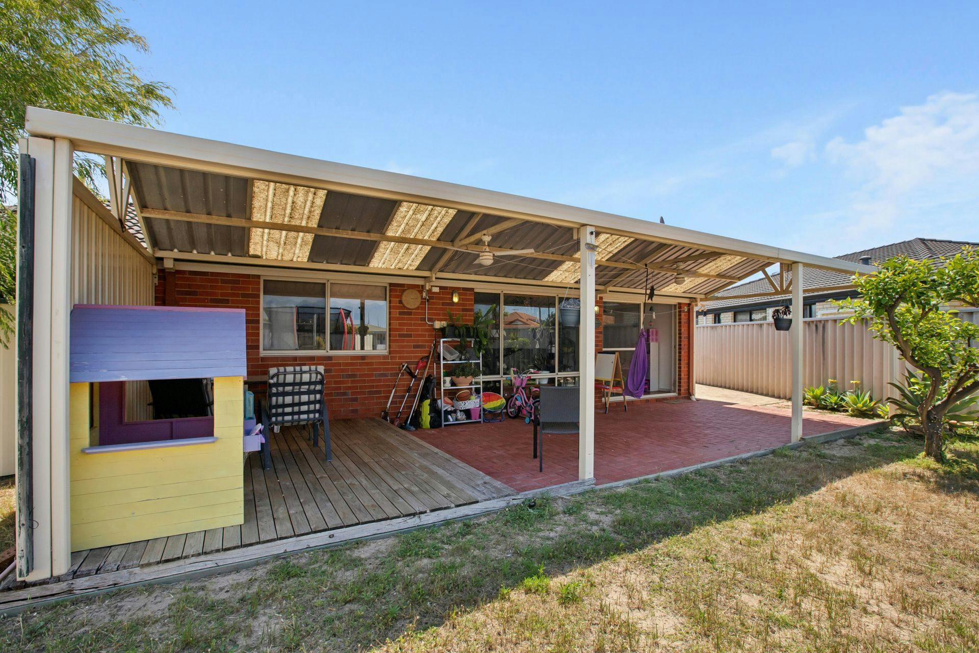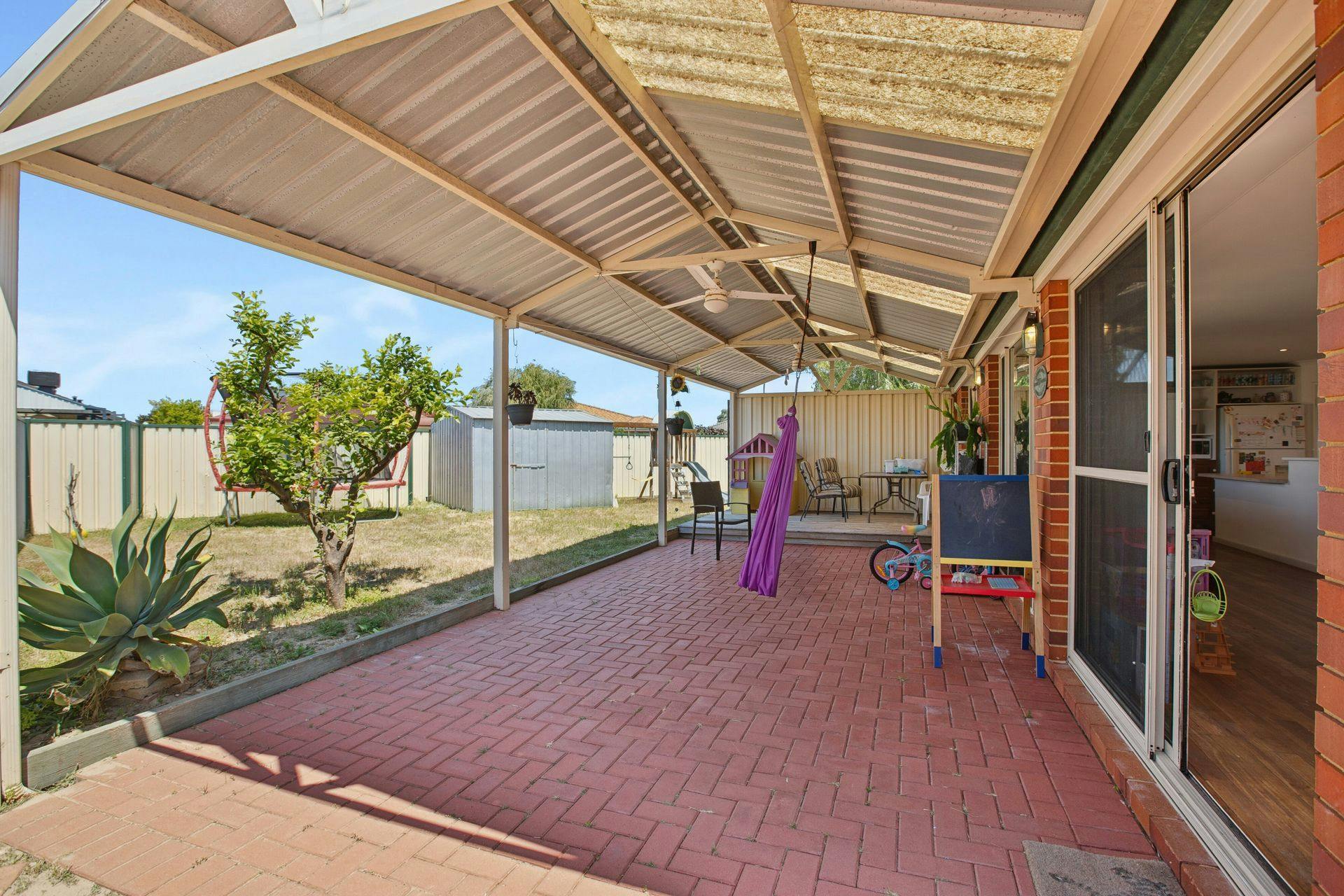 - Spacious backyard that wraps around the home, with a combination of lawn and paving, plus a large garden shed for stowage
