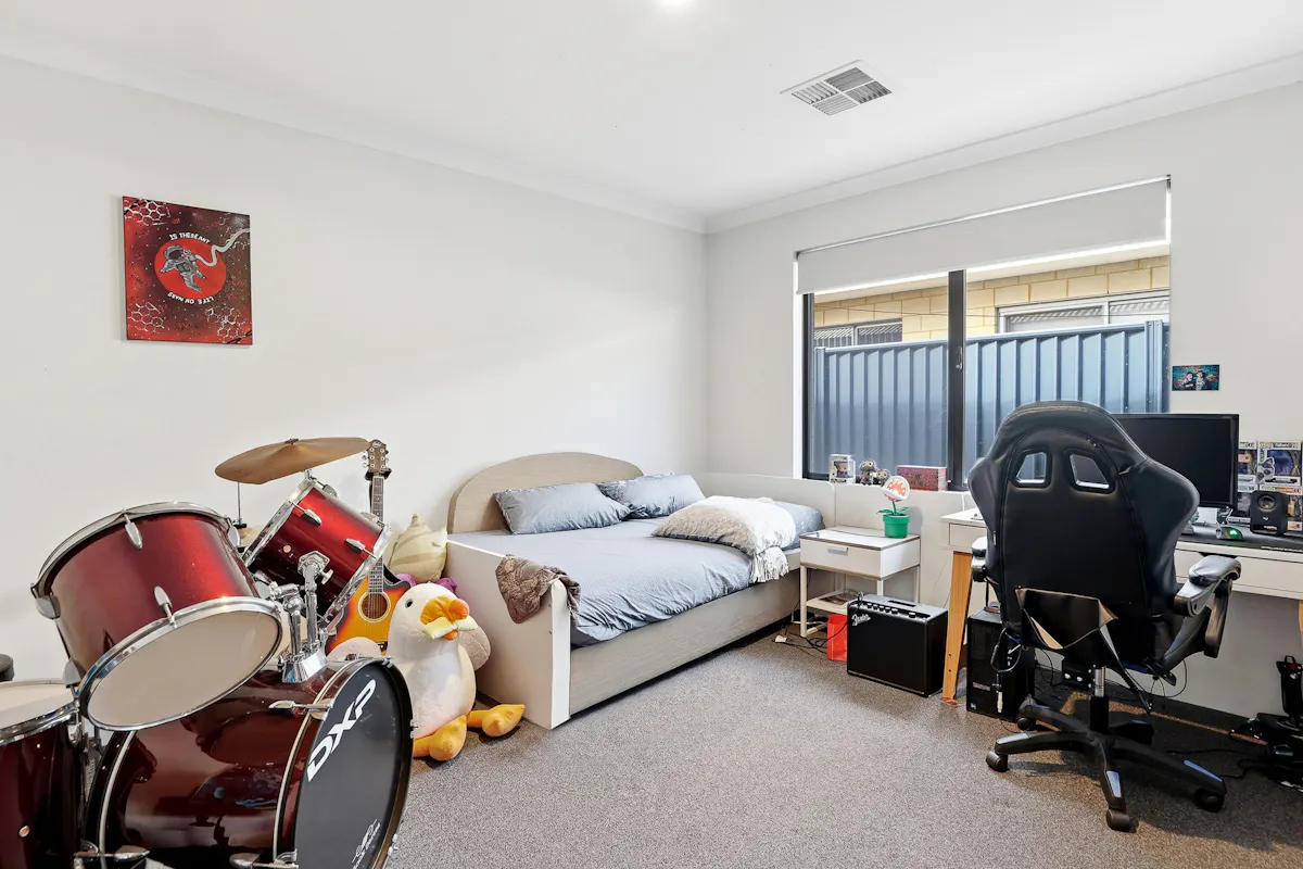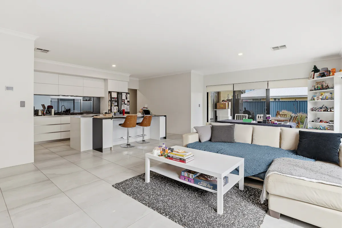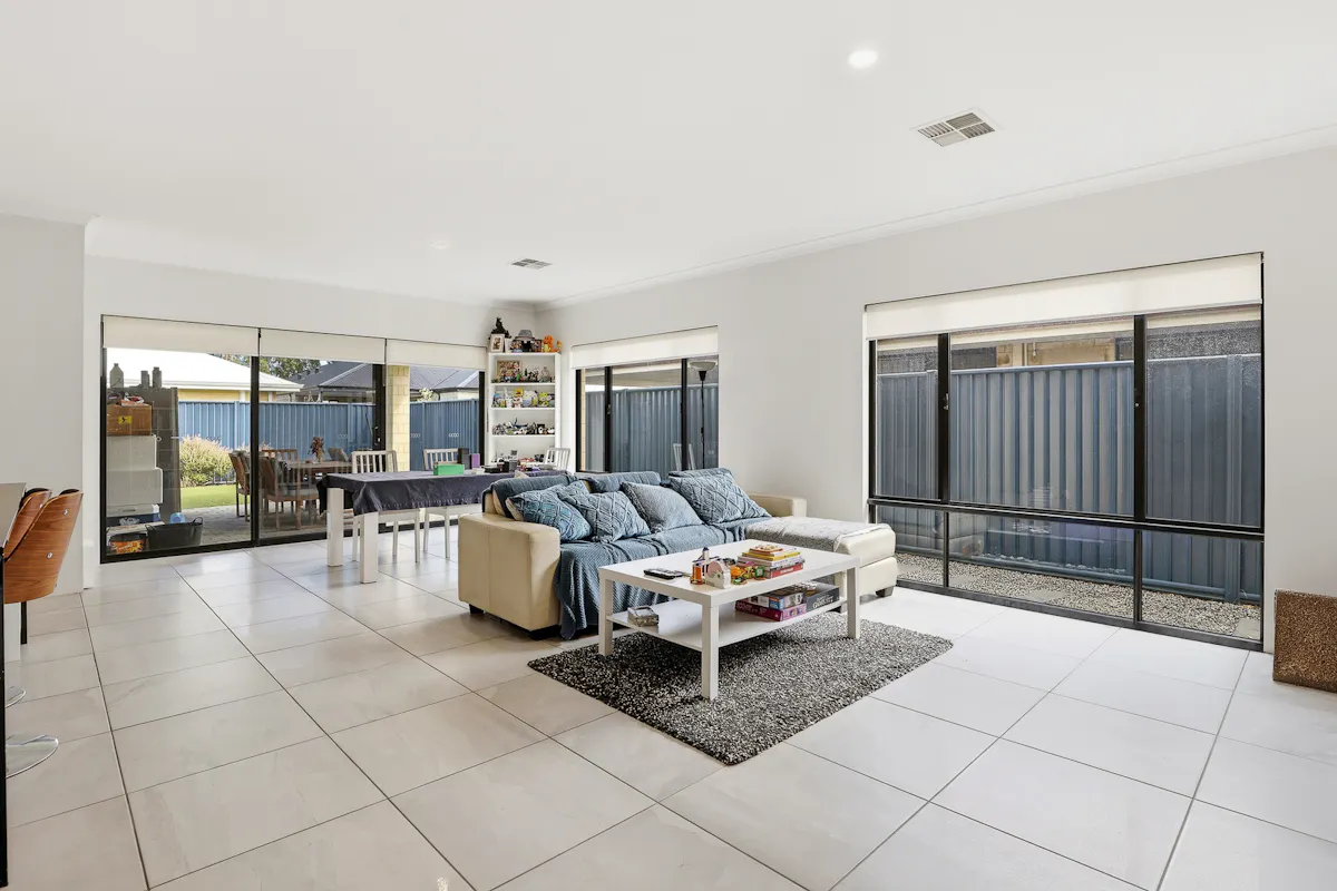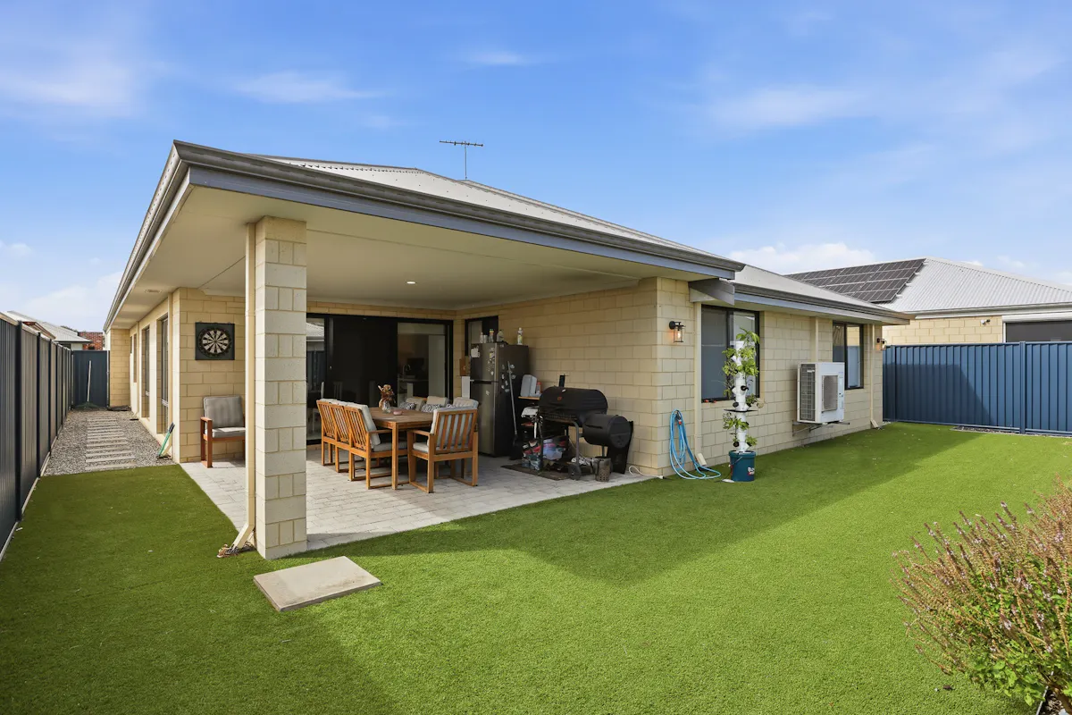 Placed within the idyllic Rivergums Estate and just a few steps from the popular Adventure Park, this modern and inviting family home offers a low maintenance design that is sure to appeal to many, with quality inclusions and stylish features throughout. Your main family zone sits centrally and flows outward to your sheltered alfresco for ease of entertaining, with a striking kitchen and scullery to oversee all. While a separate theatre room and activity space between the minor bedrooms ensure plenty of room for relaxation throughout. The master suite is placed to the front of the home for a peaceful space to retreat to at the end of the day, with your three further bedrooms all well-spaced and positioned around the family bathroom for convenience for all. The backyard was carefully created as a minimal upkeep setting, with synthetic lawn to the surrounds, while your double garage awaits to the front of the home for secure storage of the vehicles.Located for absolute family convenience, the local primary and secondary school is within strolling distance, with childcare options equally on hand to ensure a laid back lifestyle appeal, while an endless array of parkland and greenspace provides plenty of opportunity for play, with parks, the picturesque lake and a variety of play equipment to explore. Stockland shopping centre is also within walking distance, and overflows with retail and dining options, with the nearby Baldivis Square providing popular cafes and a handy IGA close at hand. And finally, for those in search of straightforward daily travel, the Kwinana Freeway is just moments away, with Warnbro train station and multiple bus connections easily within reach.