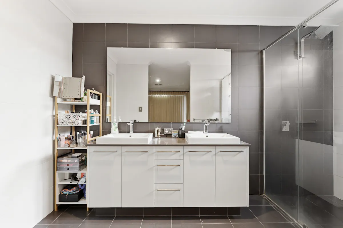 - Spacious master suite to the front of the home, with quality window coverings, a large walk-in robe and a retreat like feel, with an ensuite equipped with floor to ceiling tiling, a shower recess with glass screening and a dual stone topped vanity, plus a privately placed WC