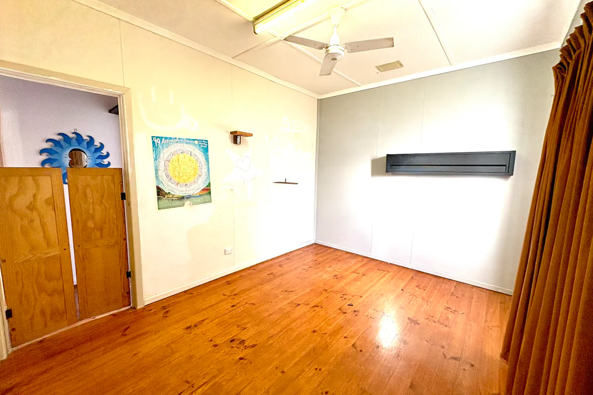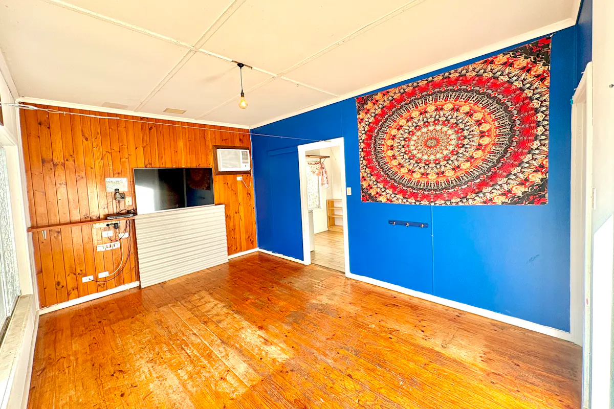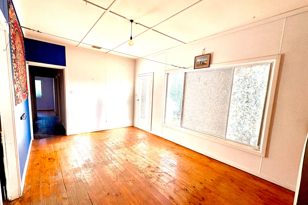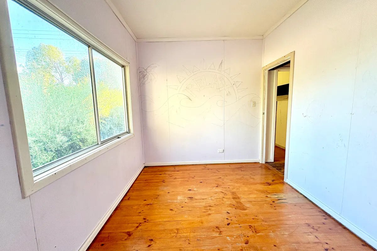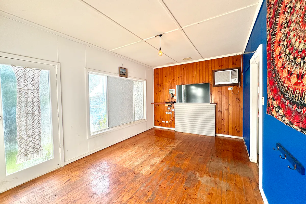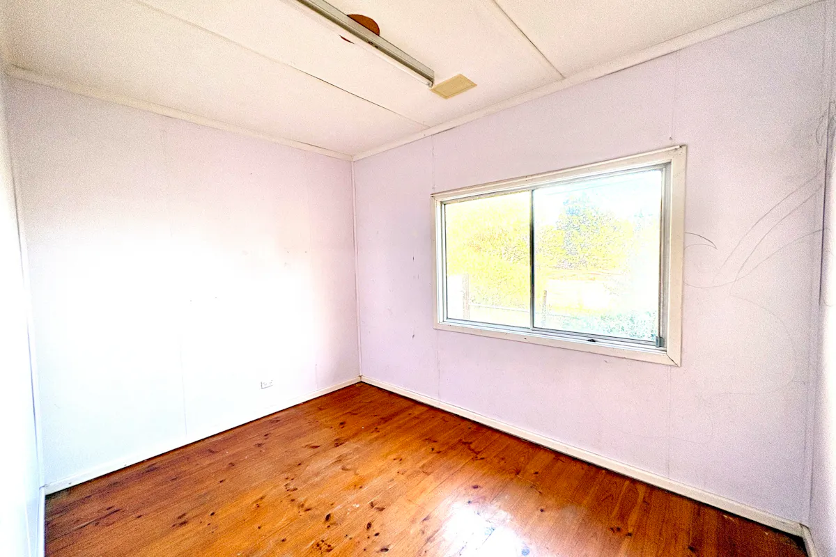 Step inside the transportable three-bedroom residence via a short set of stairs into a comfortable lounge, complete with a near-new reverse cycle air conditioner for year-round comfort. Pine floorboards flow throughout much of the home, ready to be restored to their former warmth and charm.