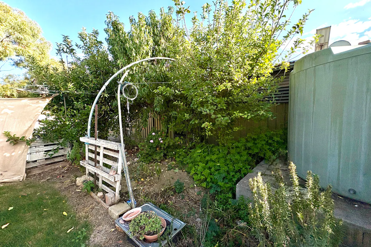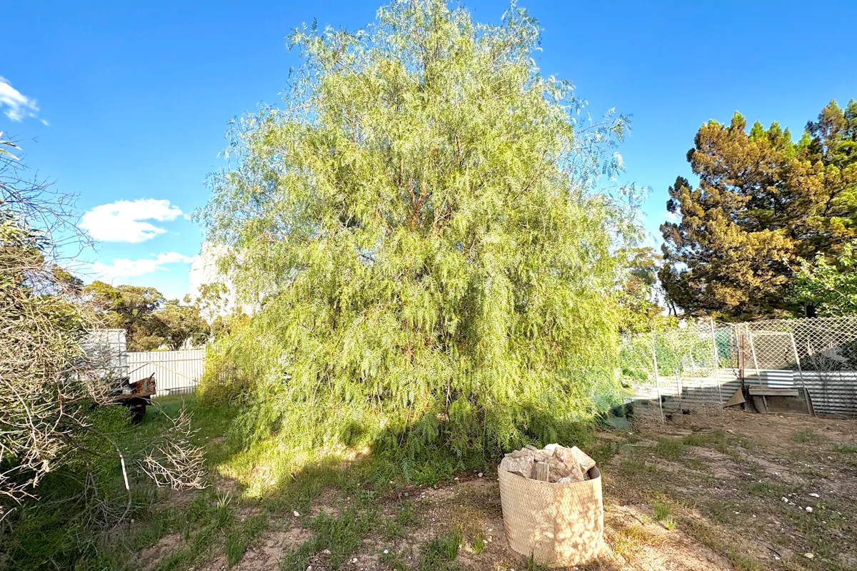 • Additional fenced section ideal for gardening or ducks, shaded by a mature pepper tree