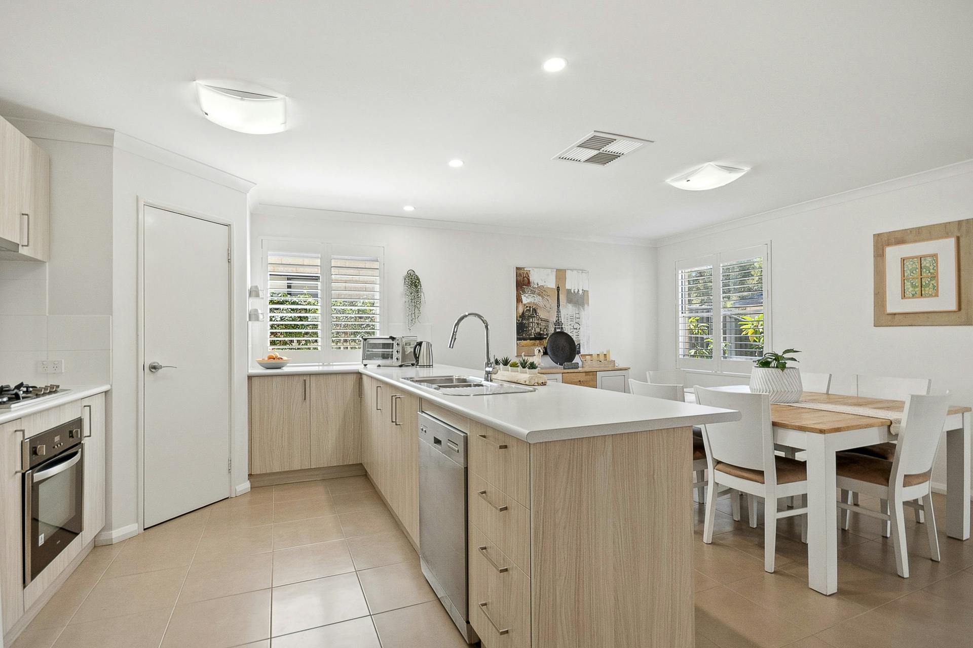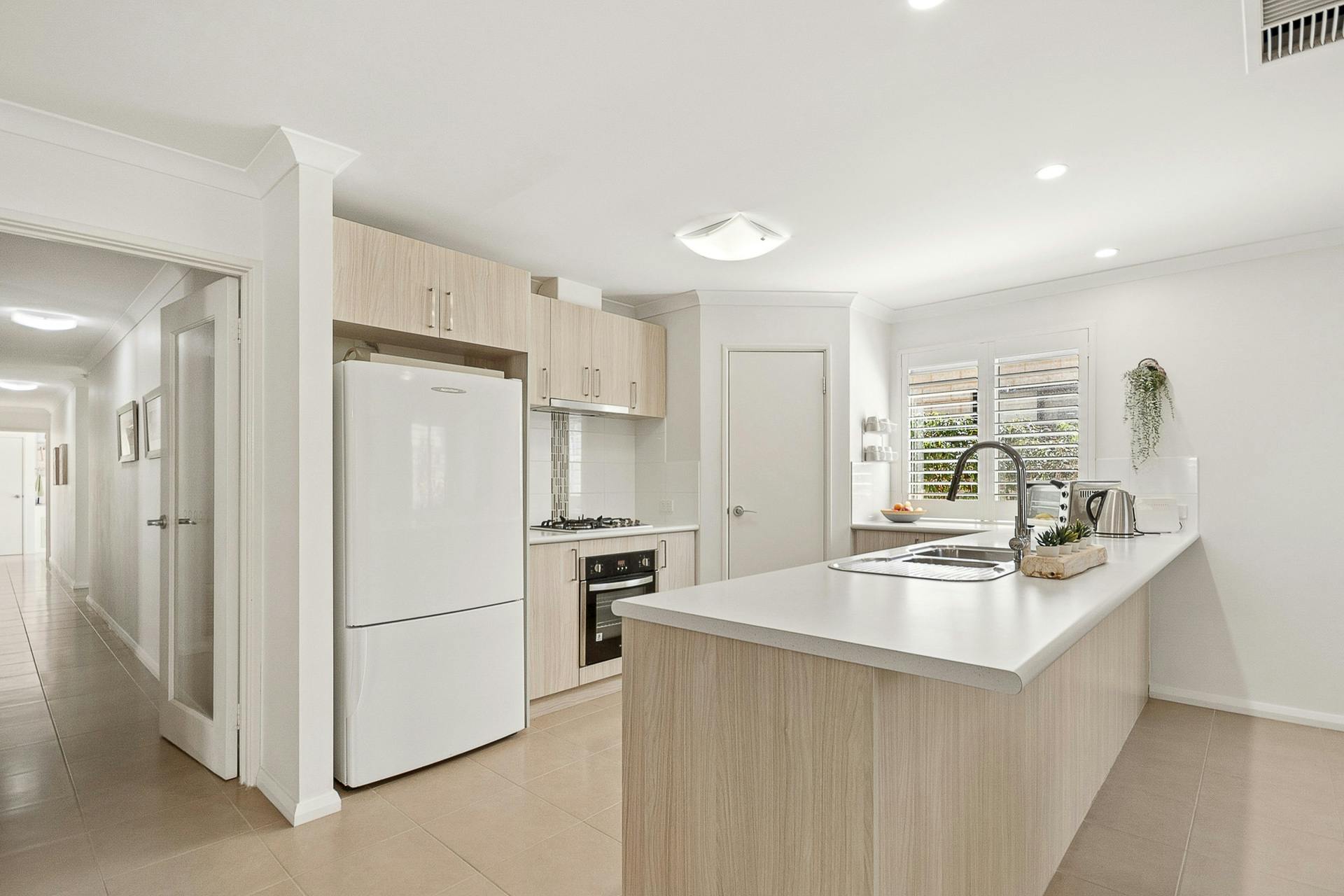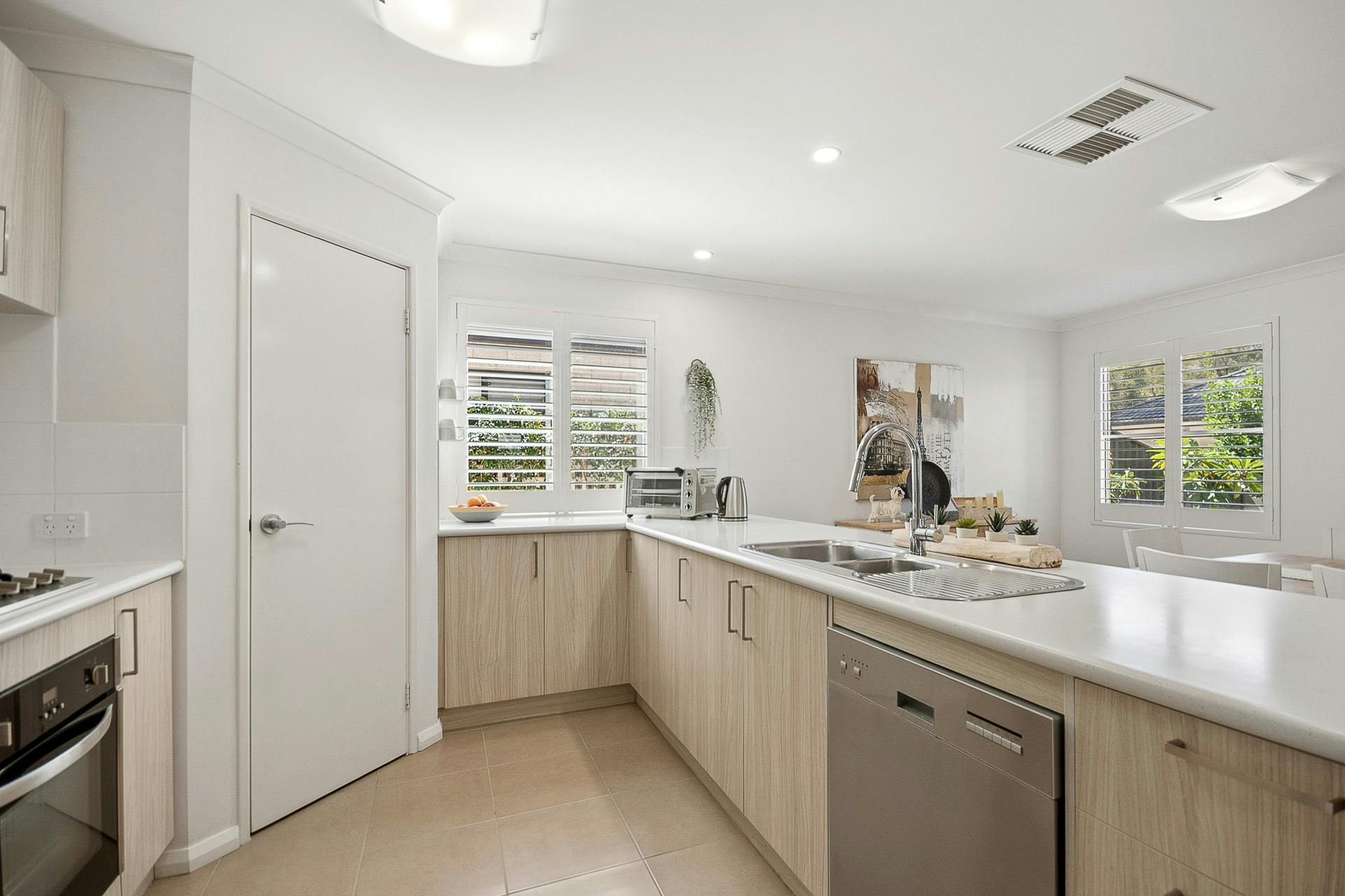 - Centrally placed kitchen with a sweeping breakfast bar for casual meals or gathering friends, with an in-built oven, gas cooktop and integrated rangehood, plus ample cabinetry, a corner pantry and a designated fridge recess