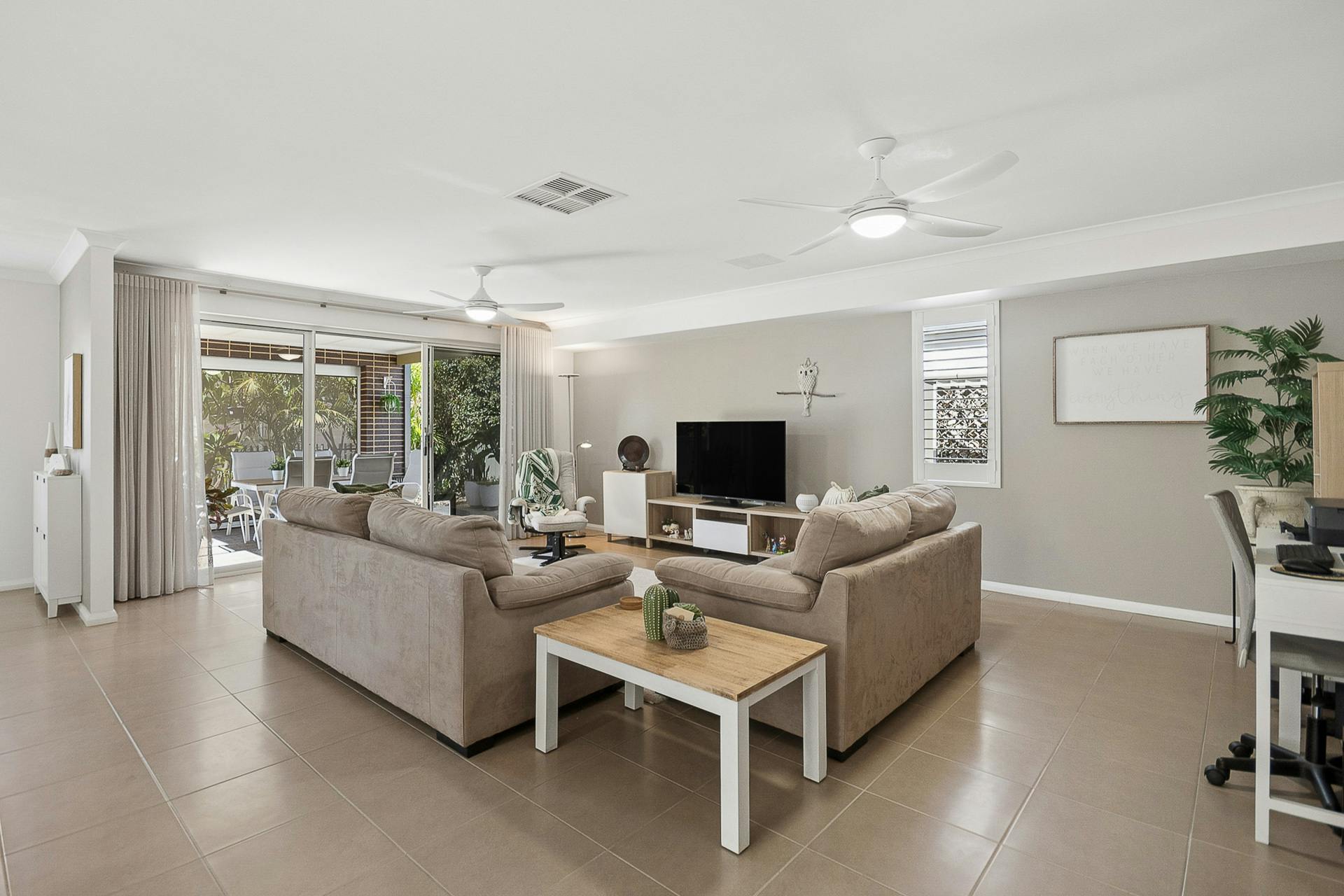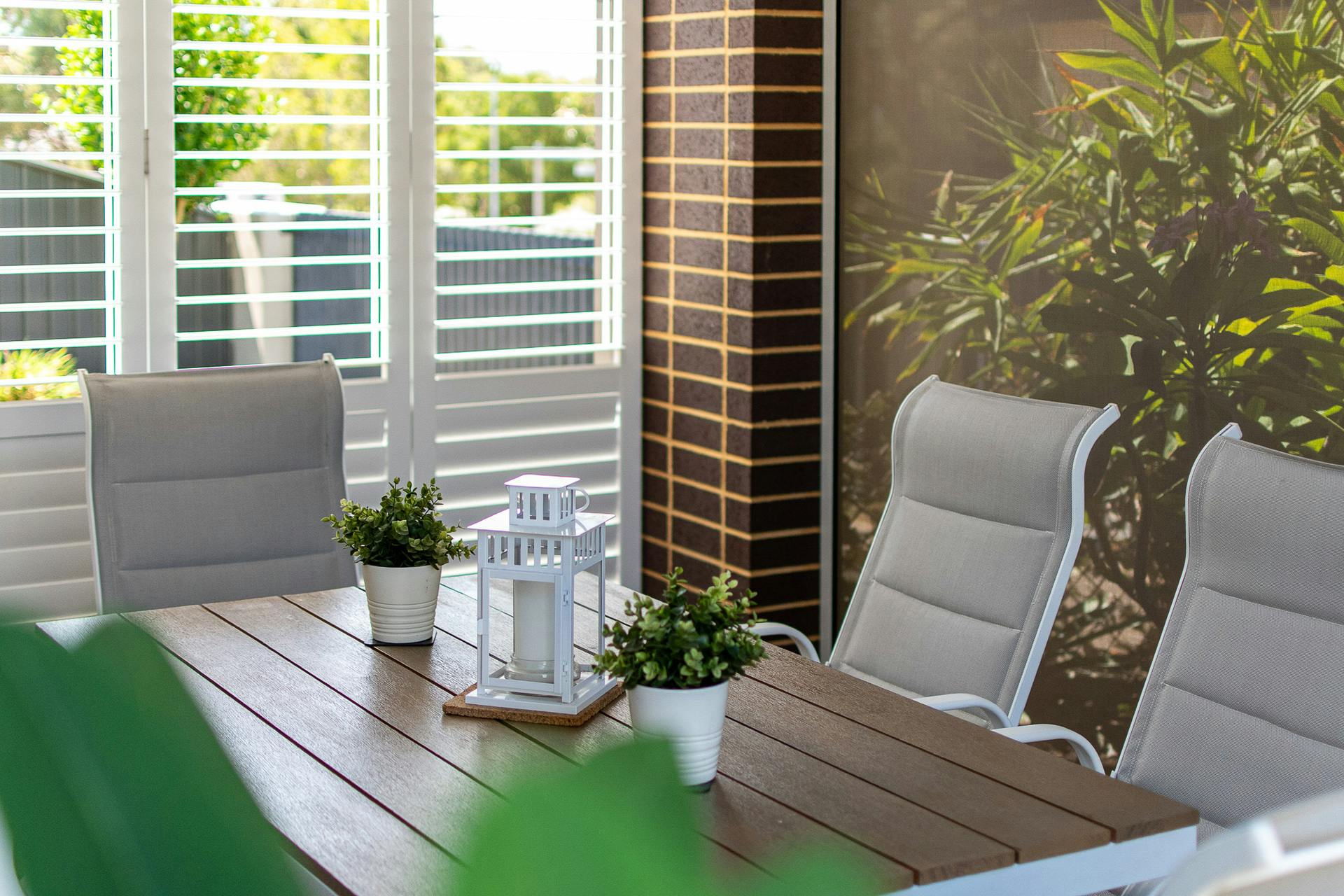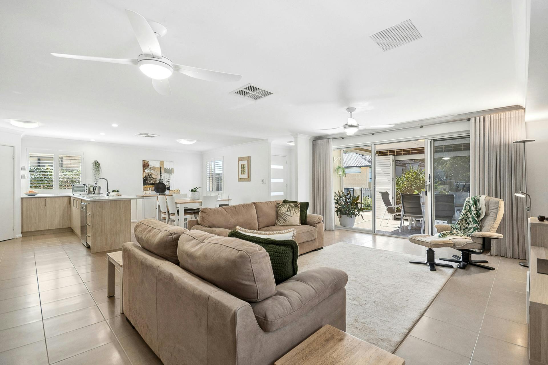 - Open plan living and dining area, with cooling ceiling fans, plantation shutters to the windows and sliding doors directly to the front alfresco, creating a true extension of the home and an indoor to outdoor flow