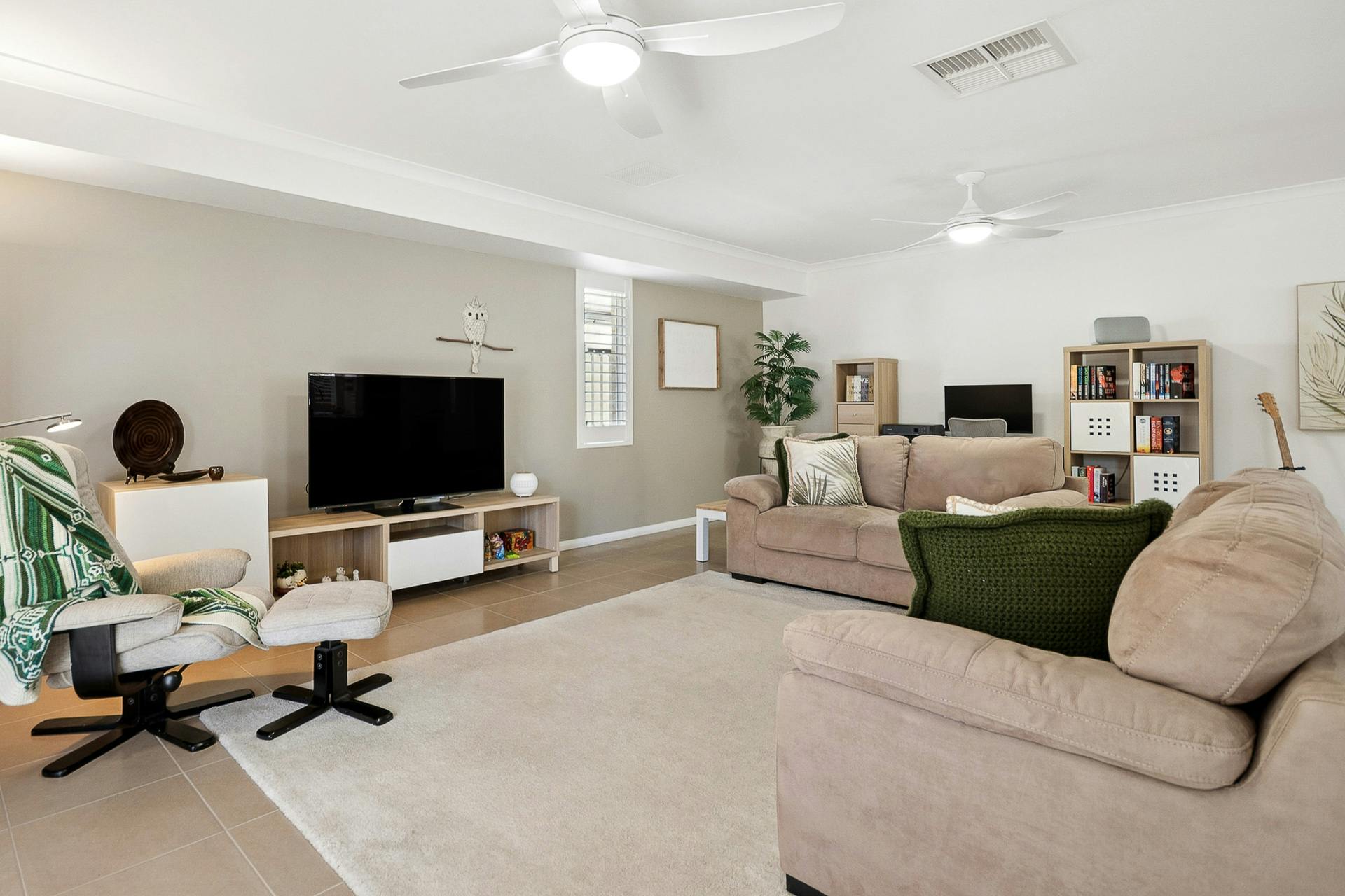 Beautifully presented with a modern and neutral interior, this spacious and inviting residence combines a premium location with a contemporary and low maintenance design that is sure to appeal to many. Located just a few short steps from the fantastic Hoover Reserve, the elevated block is fully fenced to make full use of the space available, with a sheltered alfresco included for outdoor dining or entertaining. Once inside, your living areas include a welcoming open plan living and dining space, with the fully equipped kitchen positioned centrally for comfortable family living, while a separate theatre room or formal lounge ensures relaxation for all. The master suite is generously spaced, with a large ensuite bathroom, while bedrooms 2 and 3 ensure plenty of room for the children or guests to claim as their own, with quality inclusions across the residence, and a move-in ready appeal.Located centrally for convenient and laid back living, the newly opened Stargate shopping precinct is easily within reach, with the popular White Horse Tavern equally close by, while Stockland shopping centre is just a little further for a wide range of retail and dining opportunity. A choice of nearby parkland provides a peaceful setting to call home, with views from the front garden for an added appeal, while nearby schooling and childcare offer a family orientated community, with road and public transport connections throughout.