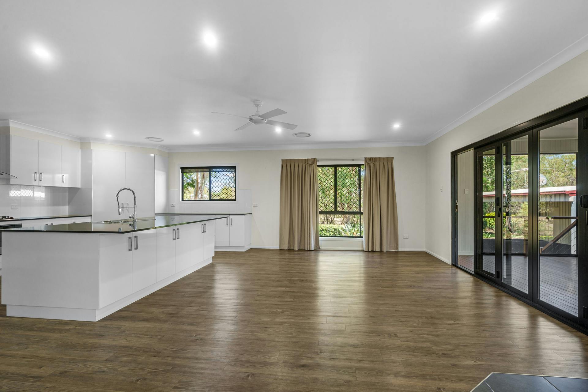 The open plan living flows seamlessly through large folding doors to the fully screened outdoor entertaining area, complete with fan and plenty of room to host family and friends while soaking in those incredible views.