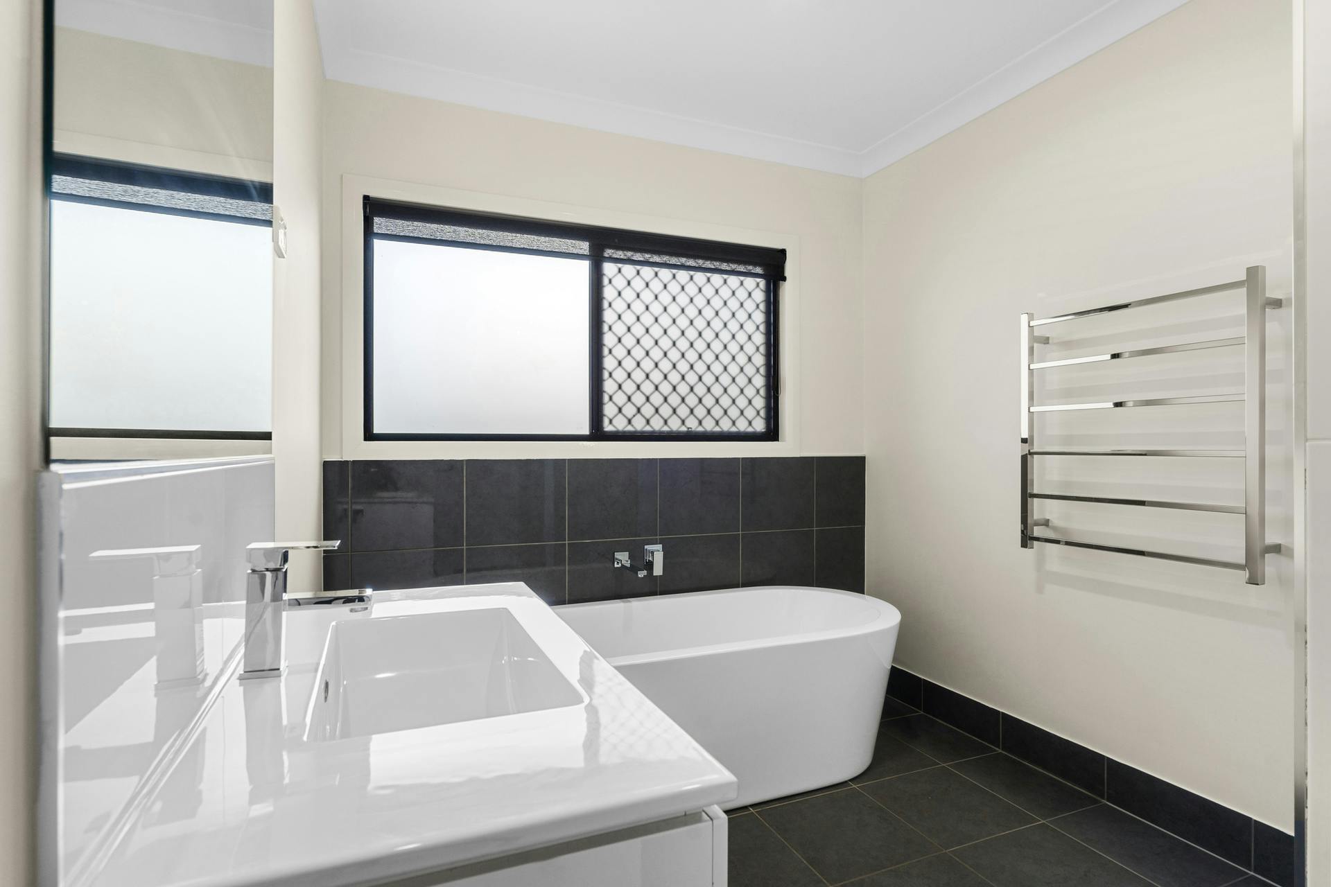 The main bathroom is finished with floor-to-ceiling tiles, freestanding bath, and separate shower, while the master suite is a true retreat - offering a spacious bedroom, stunning ensuite with toilet, shower and vanity, and a walk-in robe you'll absolutely fall in love with.