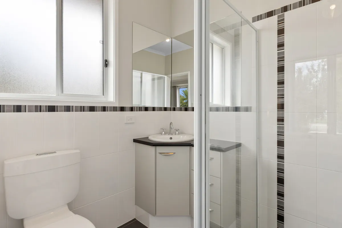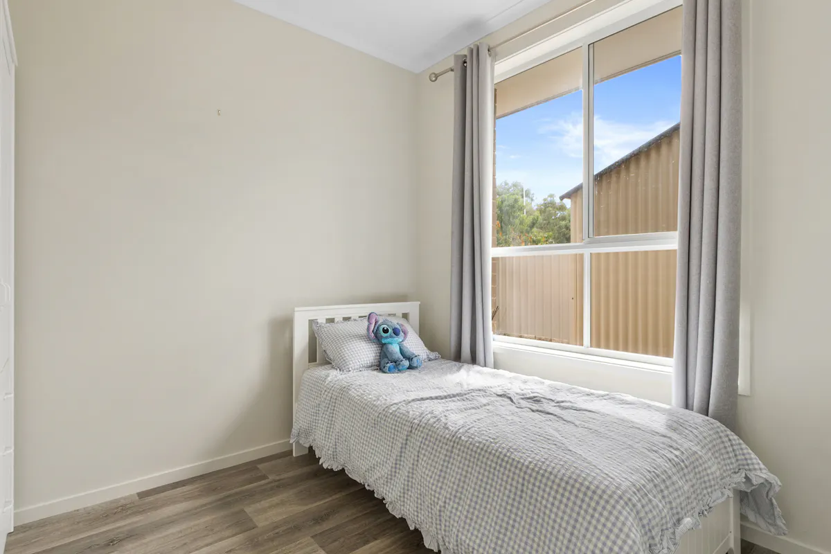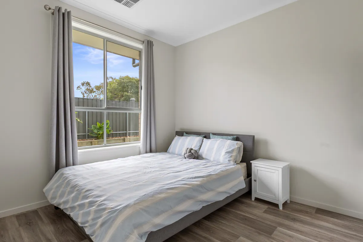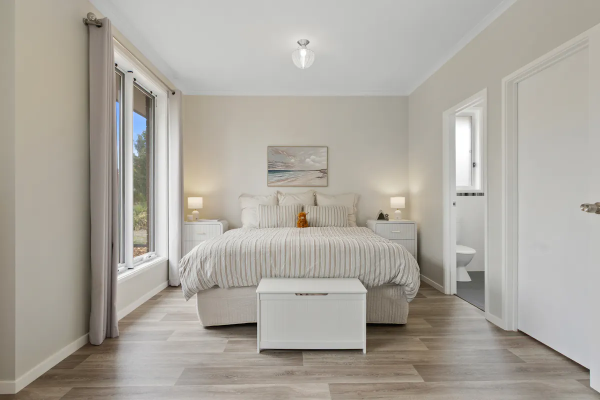 The remaining three bedrooms are all well-sized and thoughtfully appointed with vinyl flooring, blockout curtains, and air vents for comfort. Centrally located, the three-way bathroom is both functional and family-friendly, featuring a large vanity, linen storage, and a separate toilet. Adding further flexibility, a fifth room can be adapted to suit your needs-whether as a home office, storage space or additional accommodation.