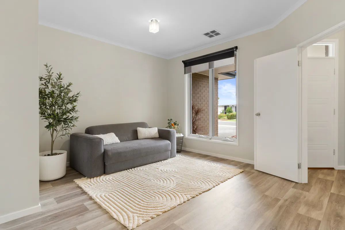 At the front of the home, the generously proportioned master suite enjoys an abundance of natural light through large windows, and is complete with a spacious walk-in robe and private ensuite. Nearby, a separate second living area offers a quiet retreat, ideal for parents or a peaceful lounge space away from the main hub of the home.