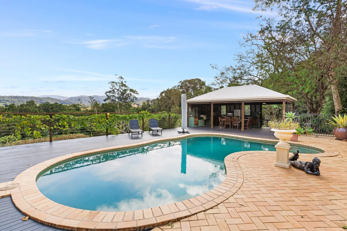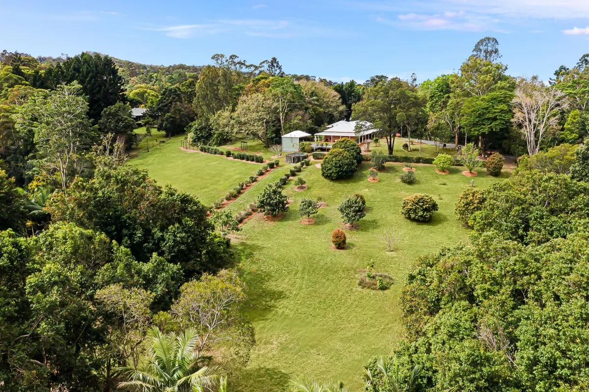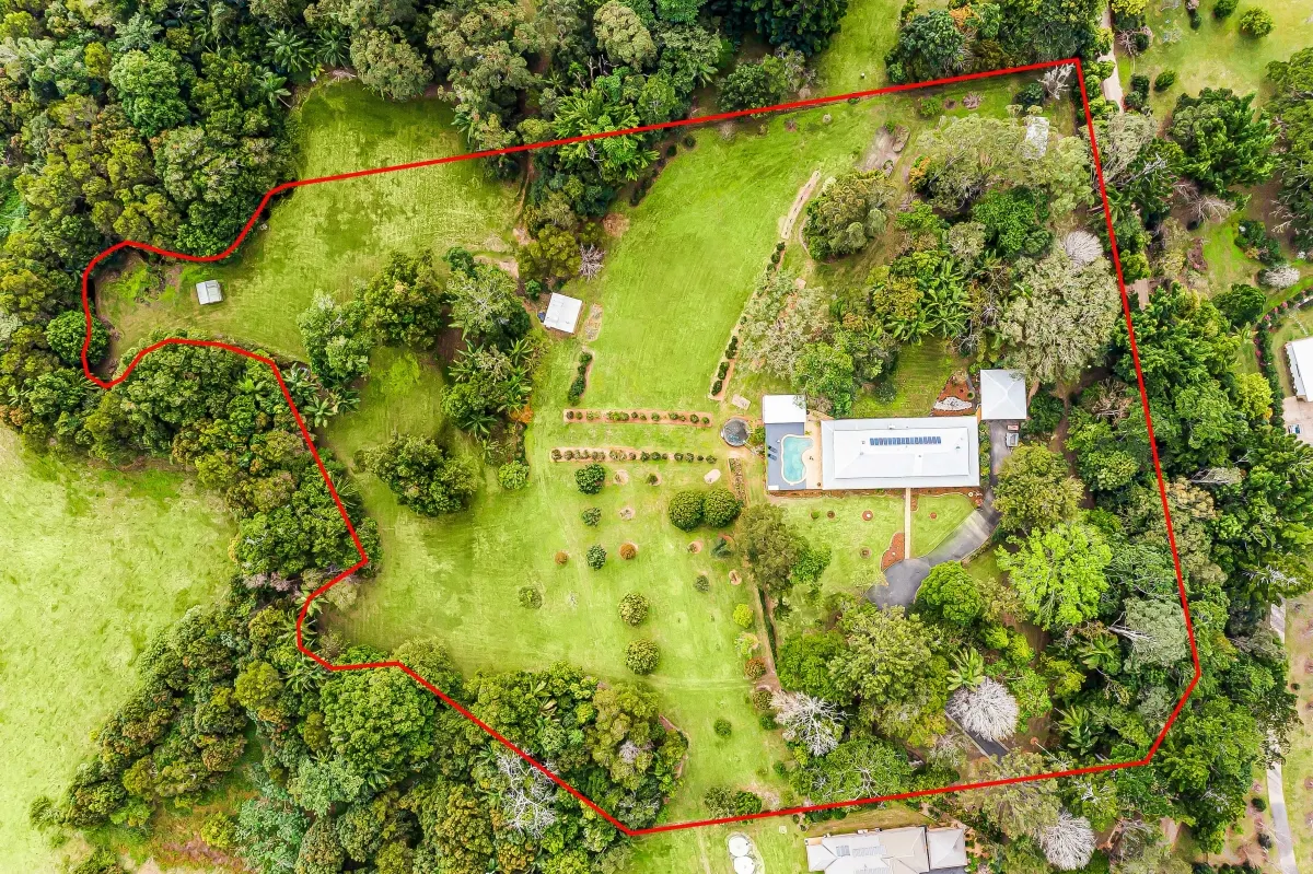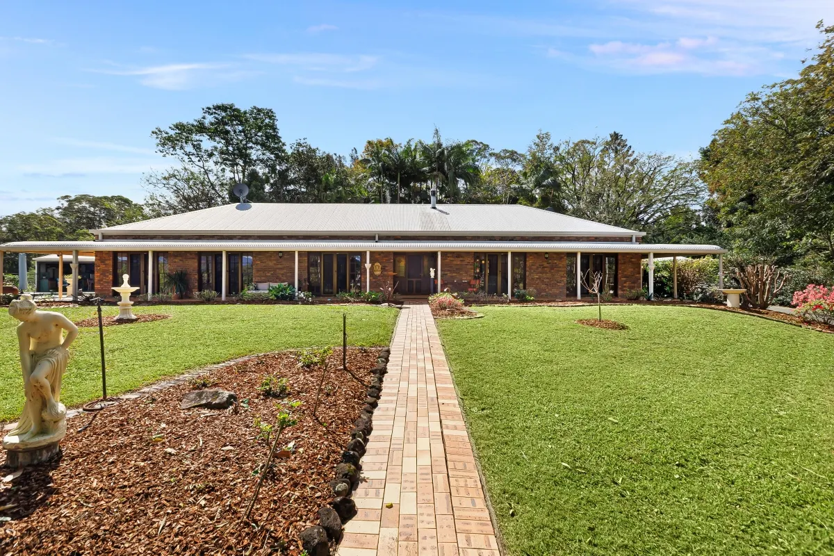 This picturesque rural sanctuary set in a highly sought-after enclave of Urliup is waiting to be discovered. From the moment you enter the property you instantly feel at peace, captivated by your surrounds, the sounds of nature and all its beauty. Resting on a versatile 5.5-acre parcel of land, which includes meandering creek with adjoining flats, botanic-style gardens, rainforest nature trails and your very own fruit orchard. With beautiful expansive hinterland views, including majestic Mt Wollumbin, this prime land and spacious residence is a rare find.Features of the residence include: