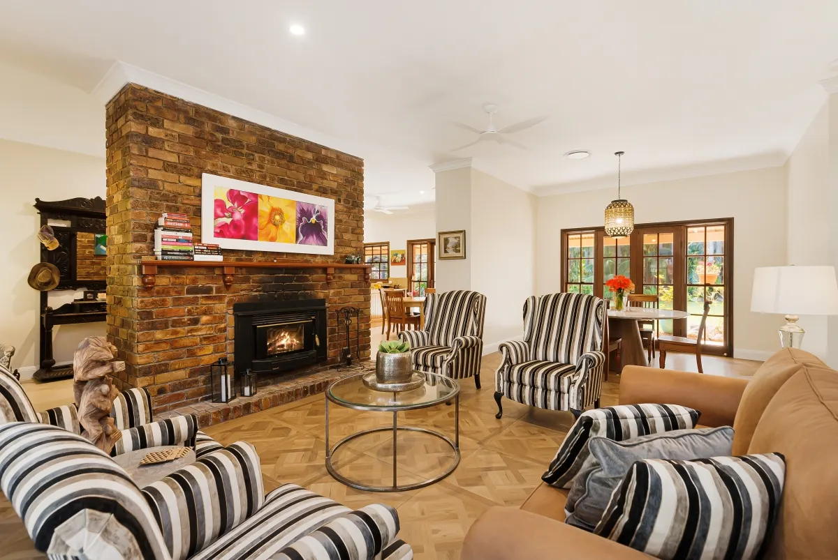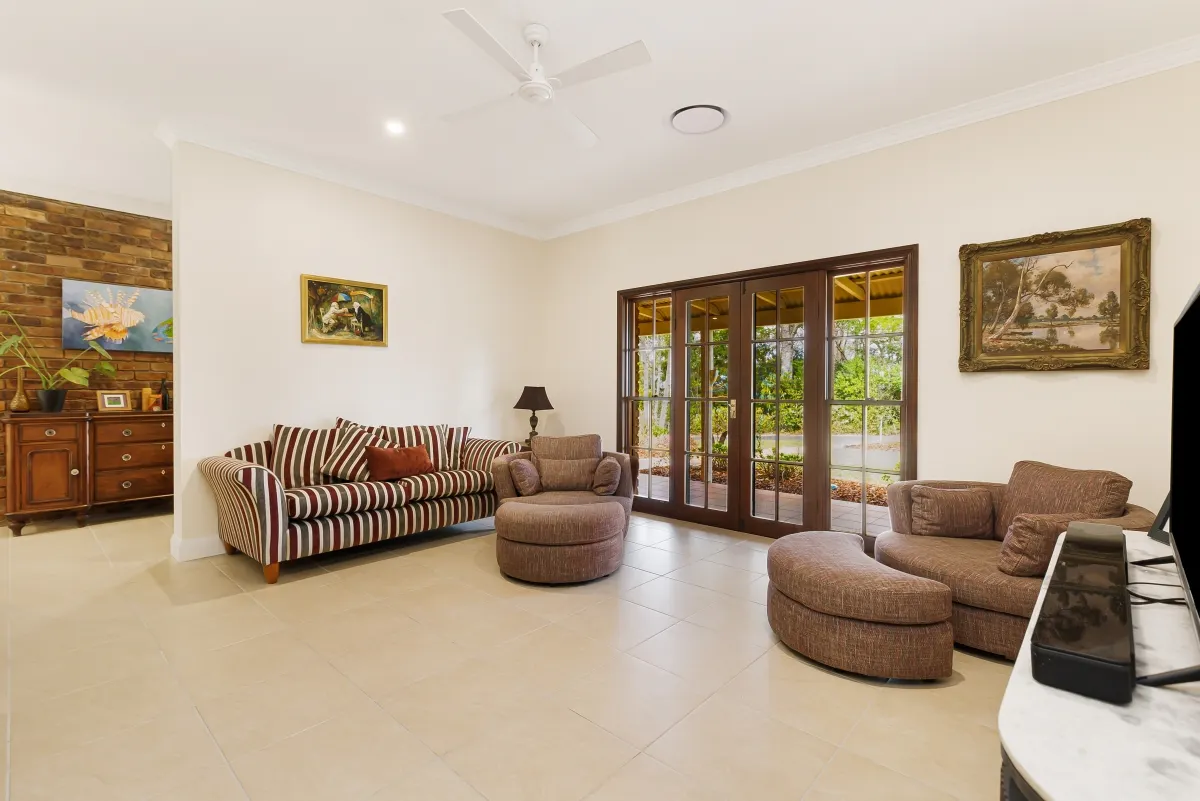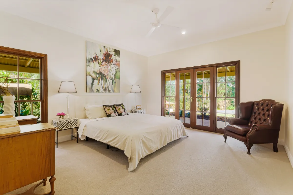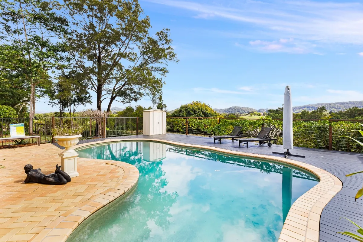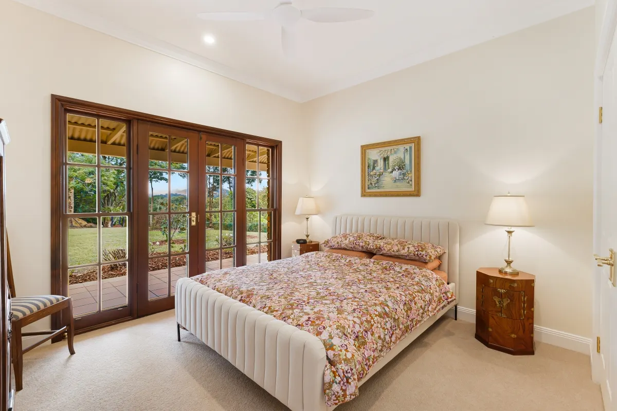 This picturesque rural sanctuary set in a highly sought-after enclave of Urliup is waiting to be discovered. From the moment you enter the property you instantly feel at peace, captivated by your surrounds, the sounds of nature and all its beauty. Resting on a versatile 5.5-acre parcel of land, which includes meandering creek with adjoining flats, botanic-style gardens, rainforest nature trails and your very own fruit orchard. With beautiful expansive hinterland views, including majestic Mt Wollumbin, this prime land and spacious residence is a rare find.Features of the residence include: