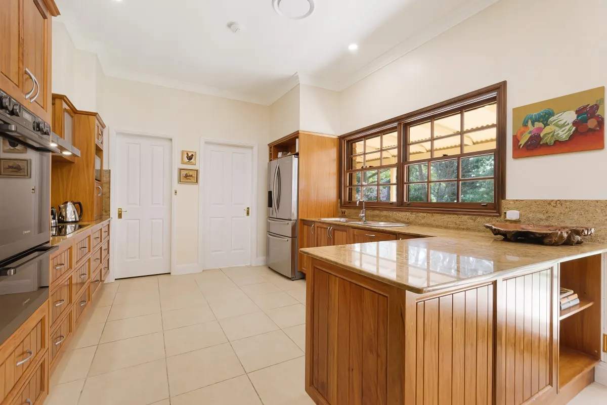 • New Guinea rosewood kitchen with new appliances including integrated Bosch D/W, Westinghouse double wall oven and 900mm induction cooktop, granite bench tops and splashbacks, walk-in pantry, and plumbed refrigeration