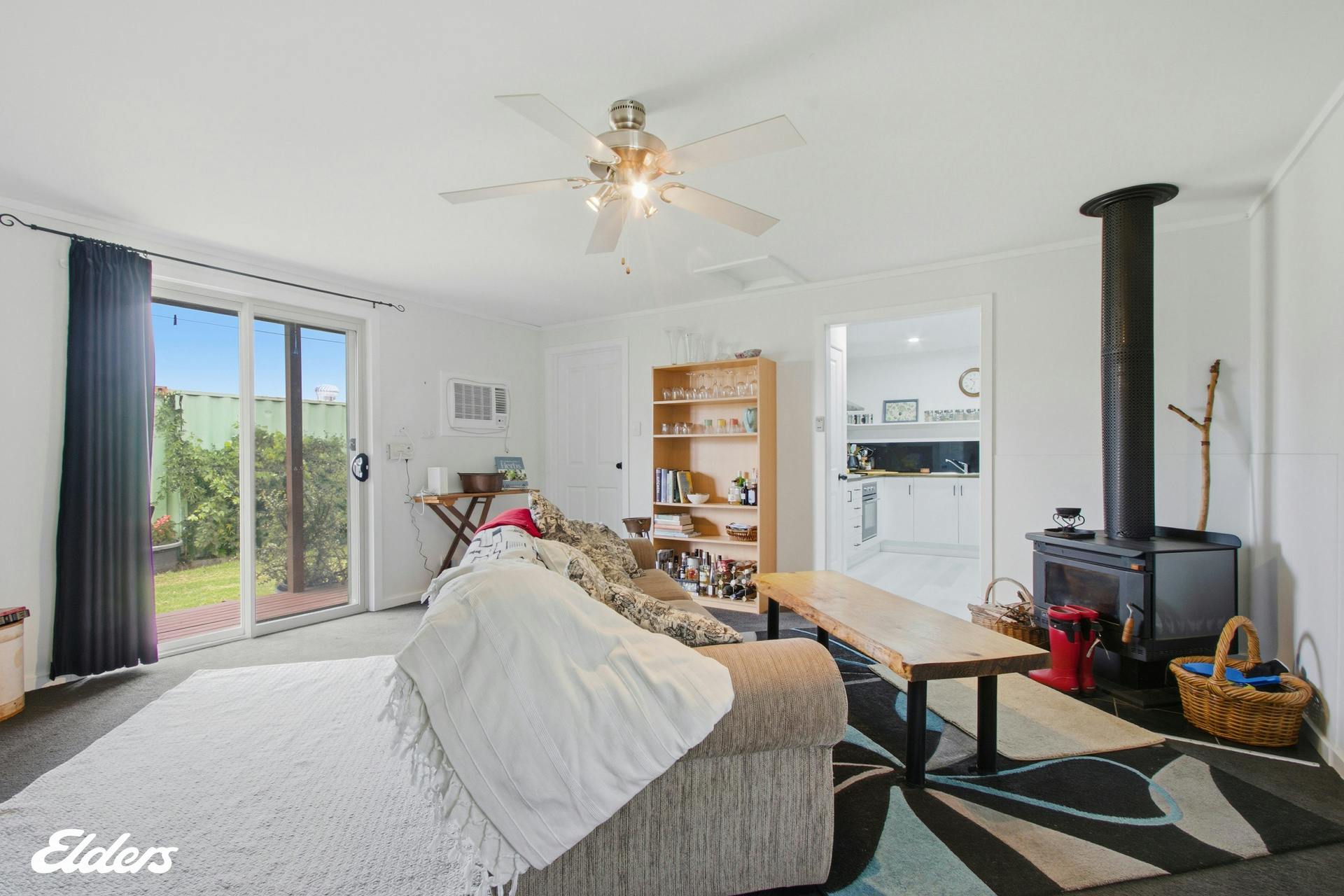 - Open plan living and newly updated kitchen area with a wood heater