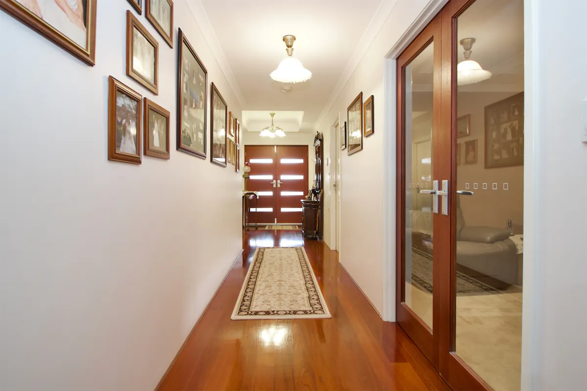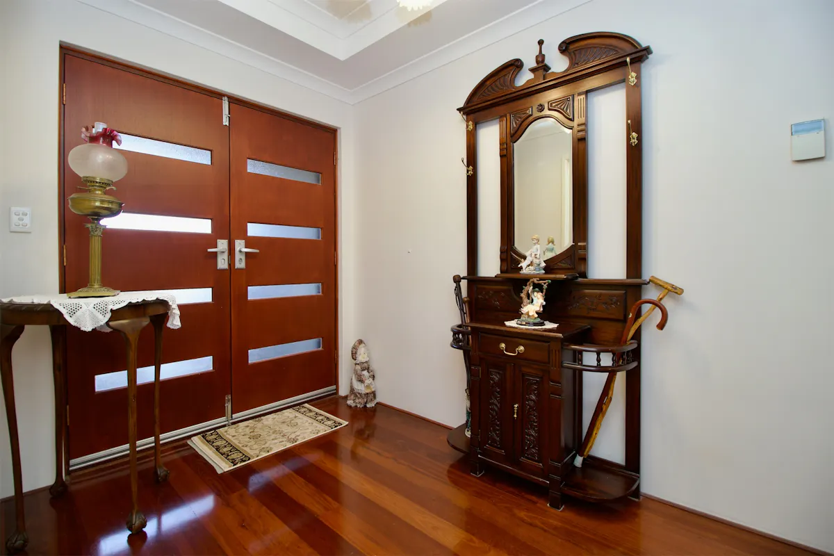 - Double door entry to a grand hallway, with a recessed ceiling, solid Jarrah floorboards and an extended design to emphasize the space and luxury on offer