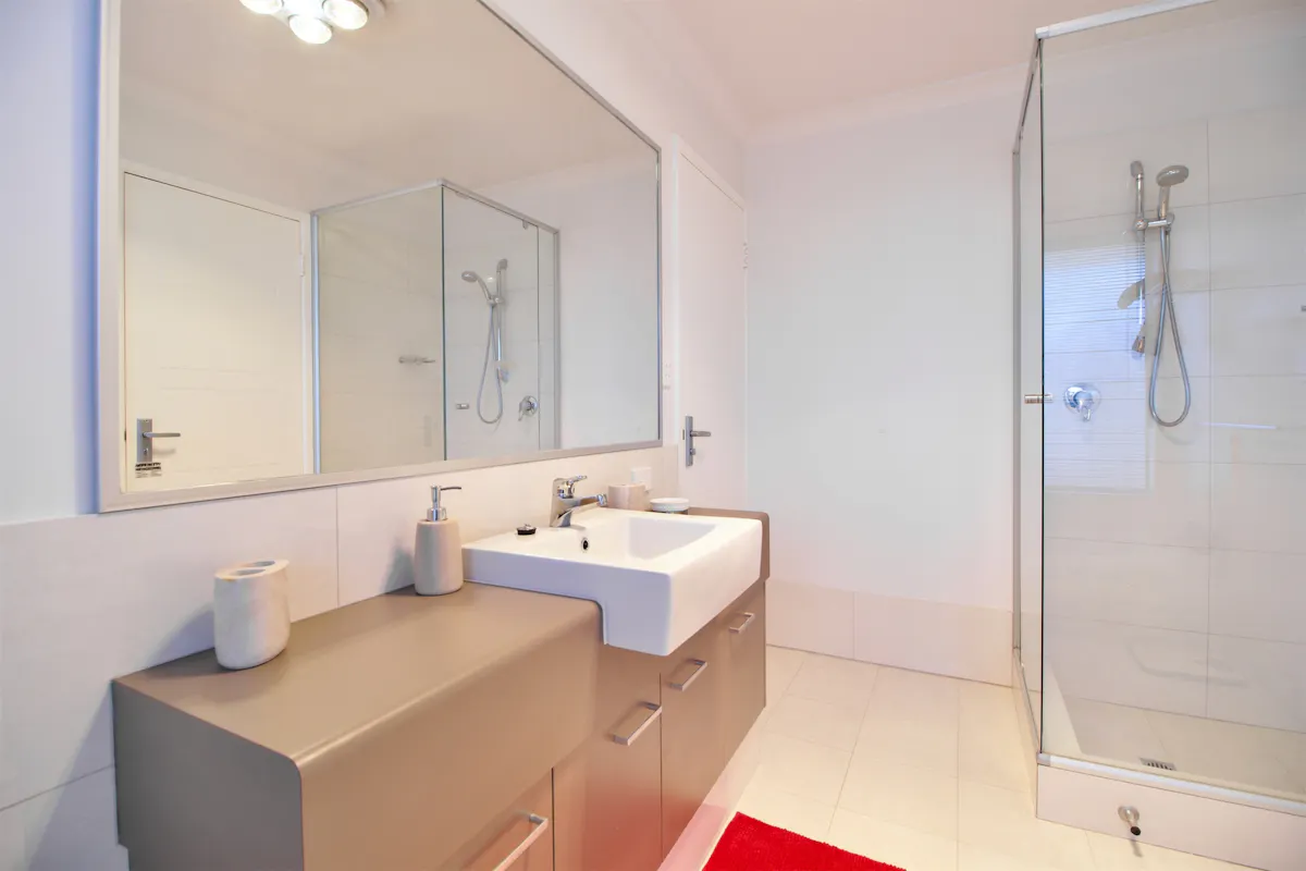 - Large laundry with an in-built bench and cabinetry, full height sliding door linen closet and direct access to the side garden