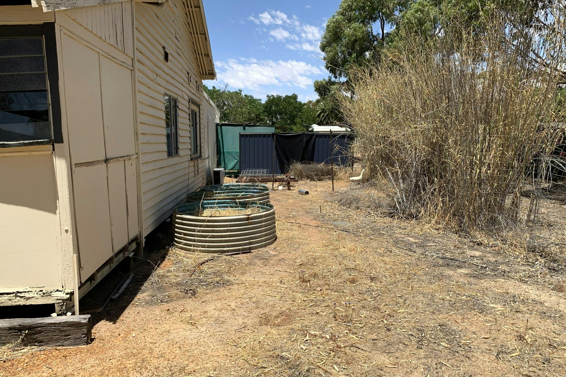 The property is well set up for self-sufficient living with two large rainwater tanks, solar panels and a ready-to-go chicken pen.