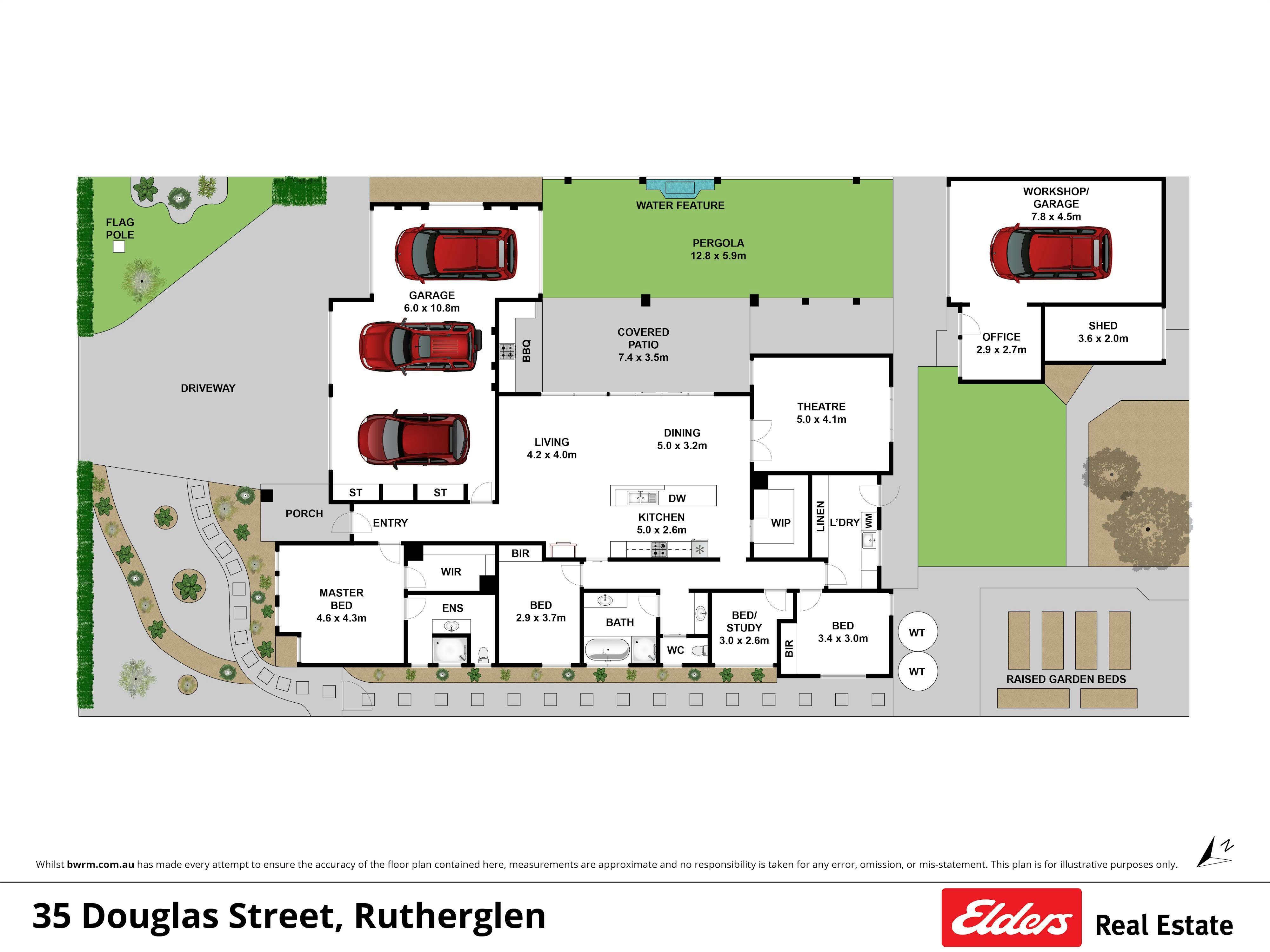 Functionality meets indulgence with exceptional garaging and workspace. An oversized three-car garage with rear roller access is paired with a fully insulated workshop equipped with power, air-conditioning and workbenches - perfect for trades, hobbies or secure storage. Additional features include a built-in security safe, 5kW solar system, evaporative cooling, plantation shutter blinds, pop-up irrigation and rainwater tanks connected to amenities.