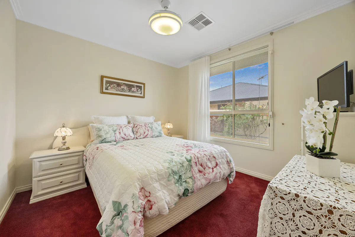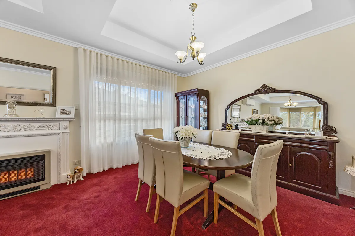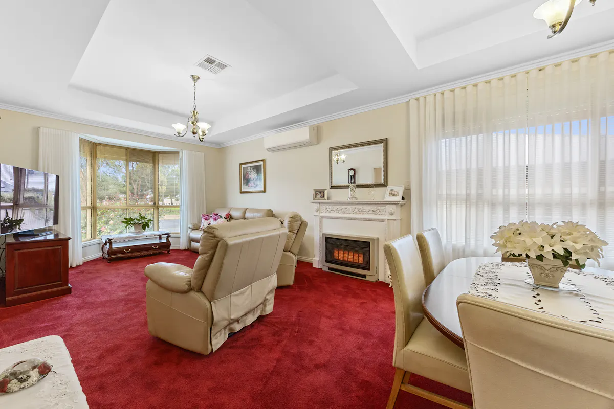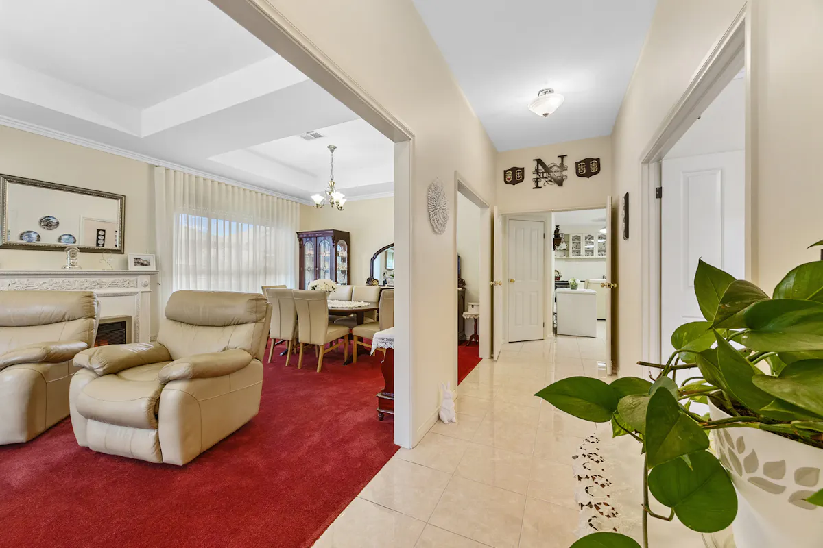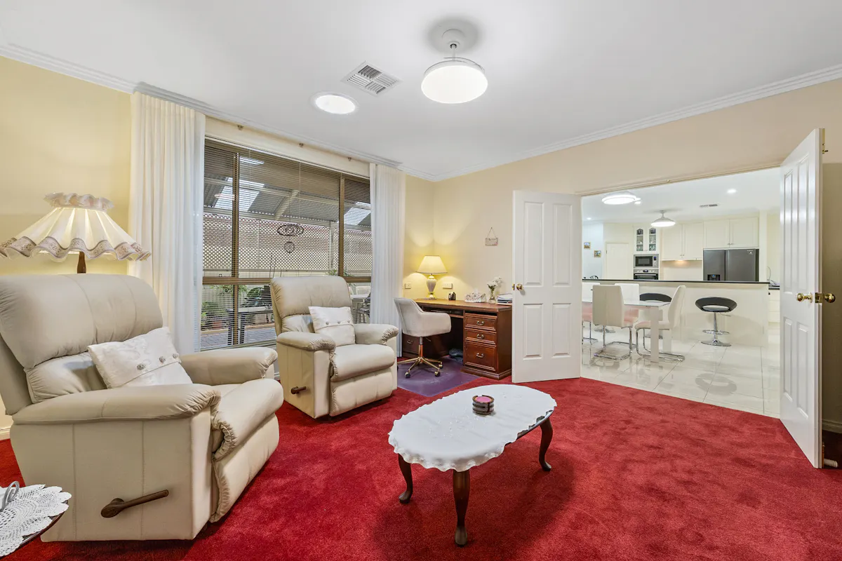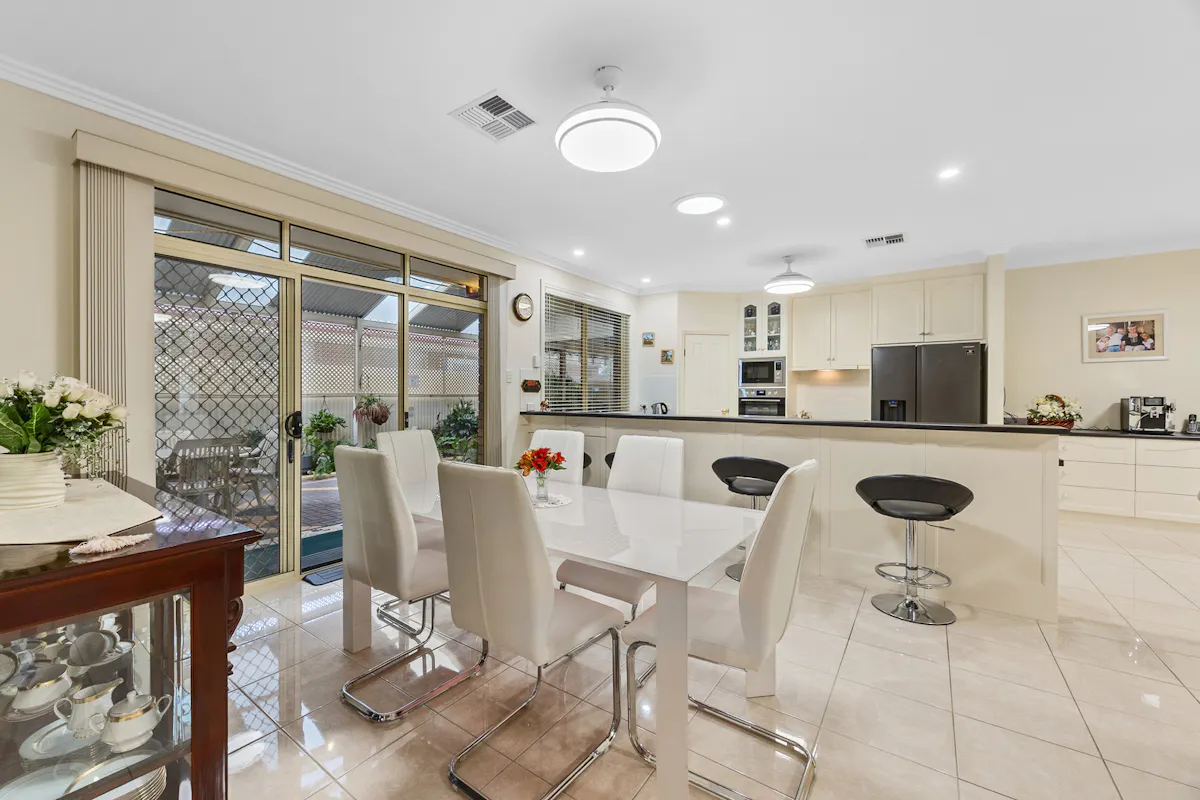 Positioned in a highly sought-after westside pocket directly opposite Christian Reserve netball courts, this 2010 Hickinbotham home delivers space, comfort, and exceptional functionality.Step inside to discover heritage-inspired décor throughout, ceiling fans in every room, and a thoughtfully designed floorplan that caters perfectly to family life or downsizing. The home features a spacious formal lounge and dining area at the front, a central open-plan kitchen, living, and dining zone, plus a separate family room at the rear. Built-in cabinetry surrounds the central living area, providing stylish and practical storage. Every detail has been meticulously cared for and must be seen to be fully appreciated, a true credit to the current owner.