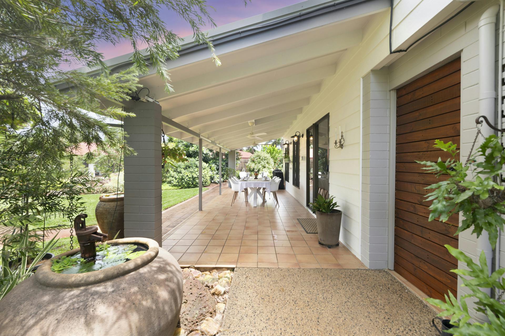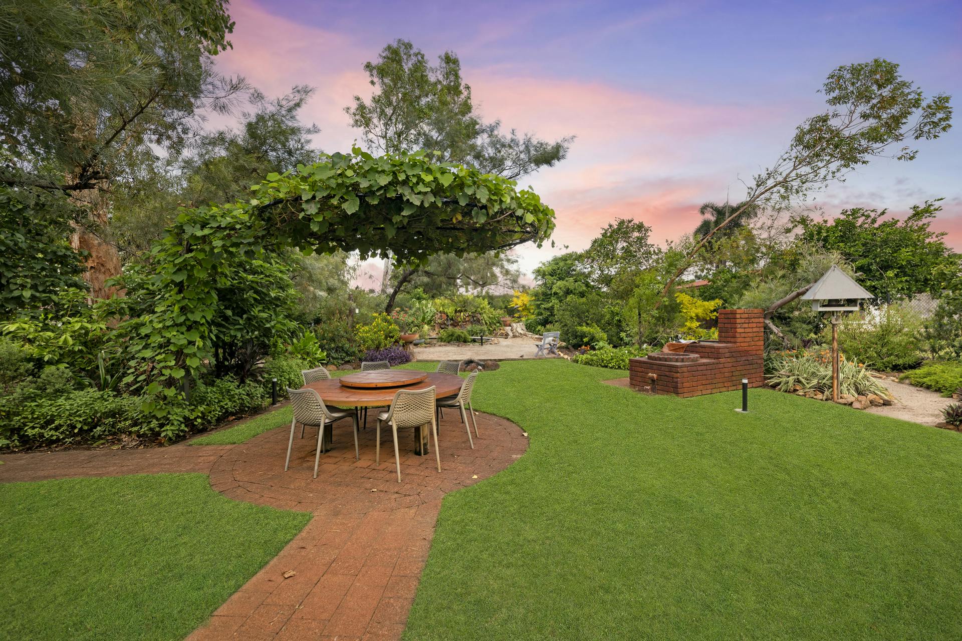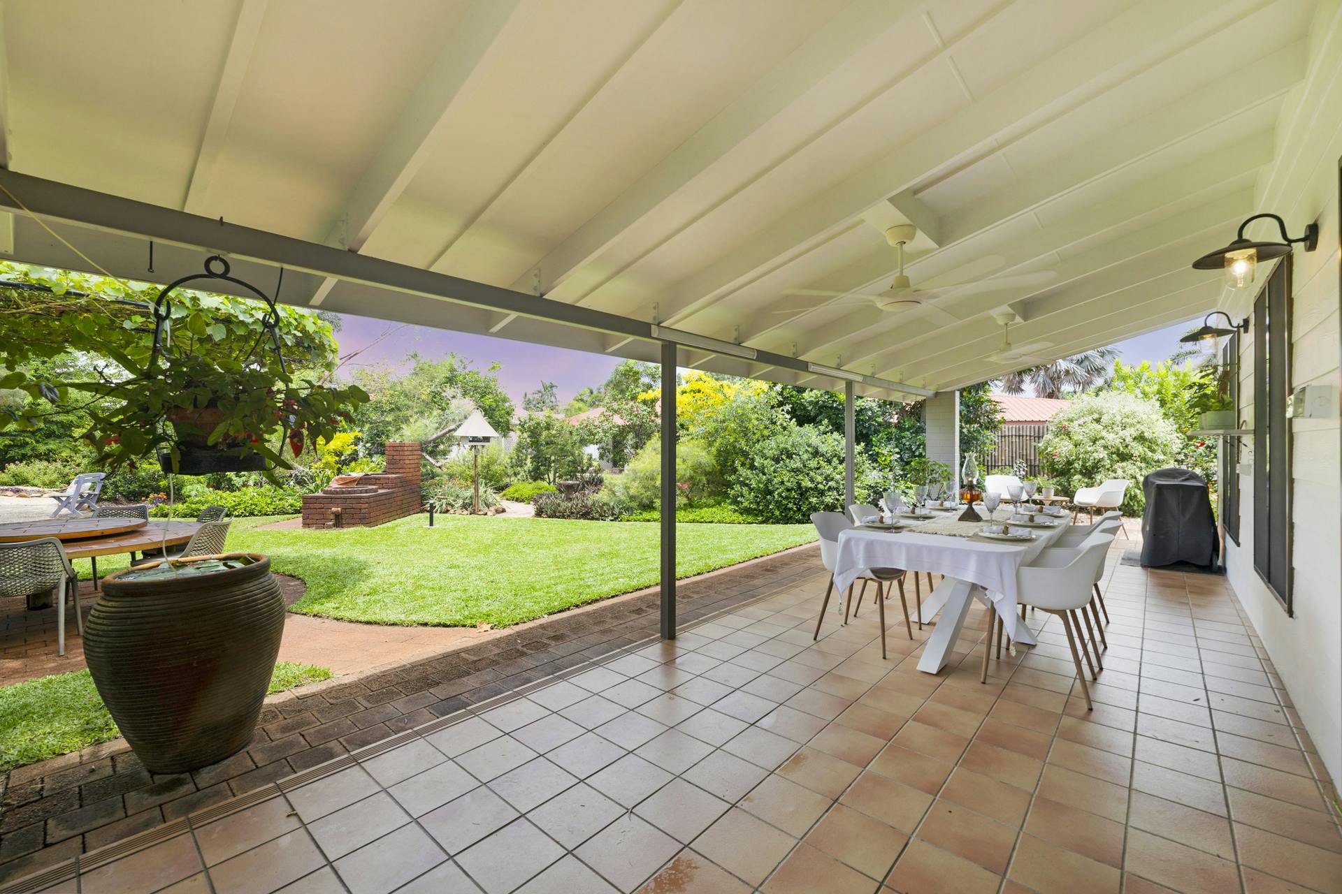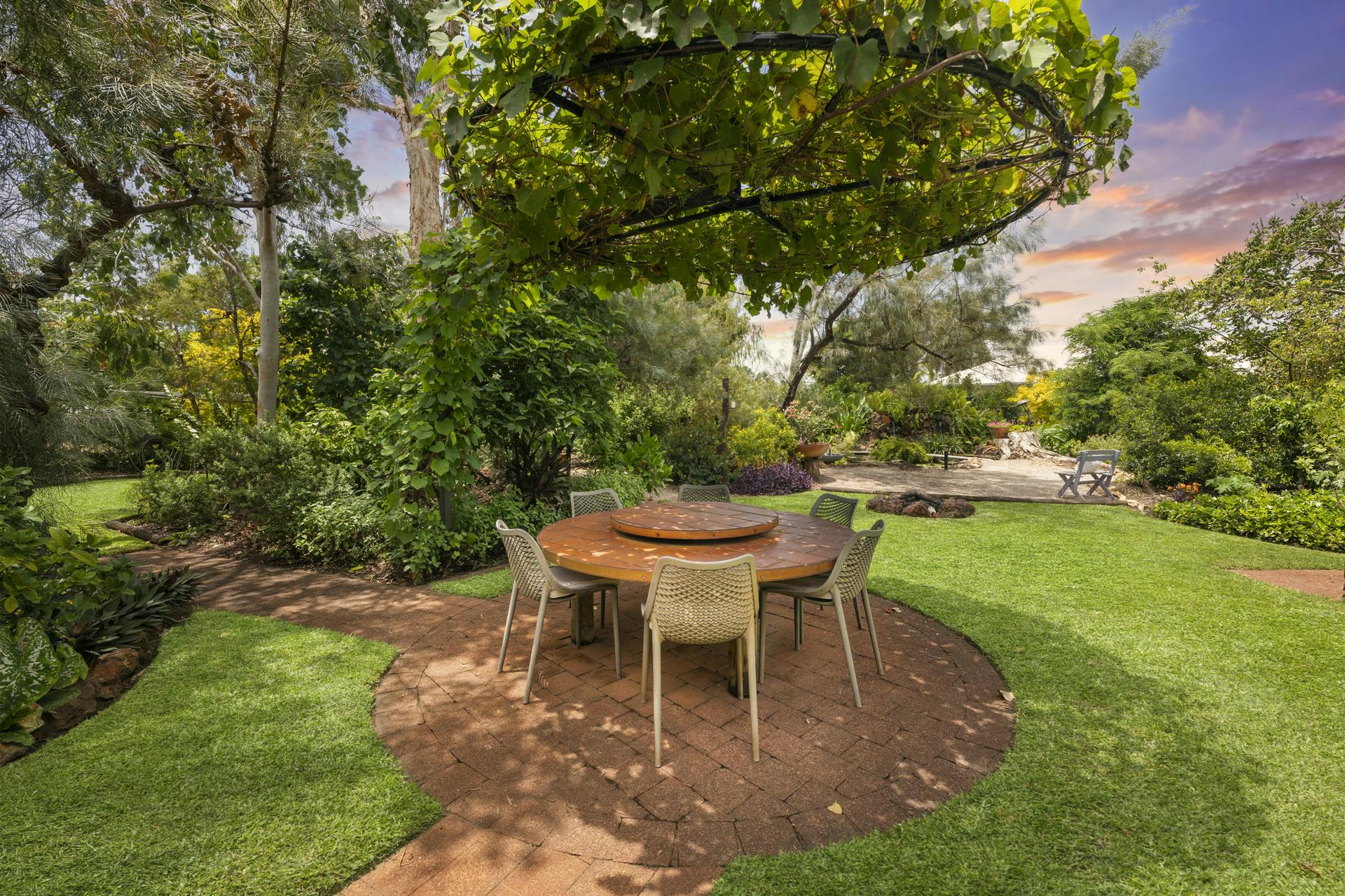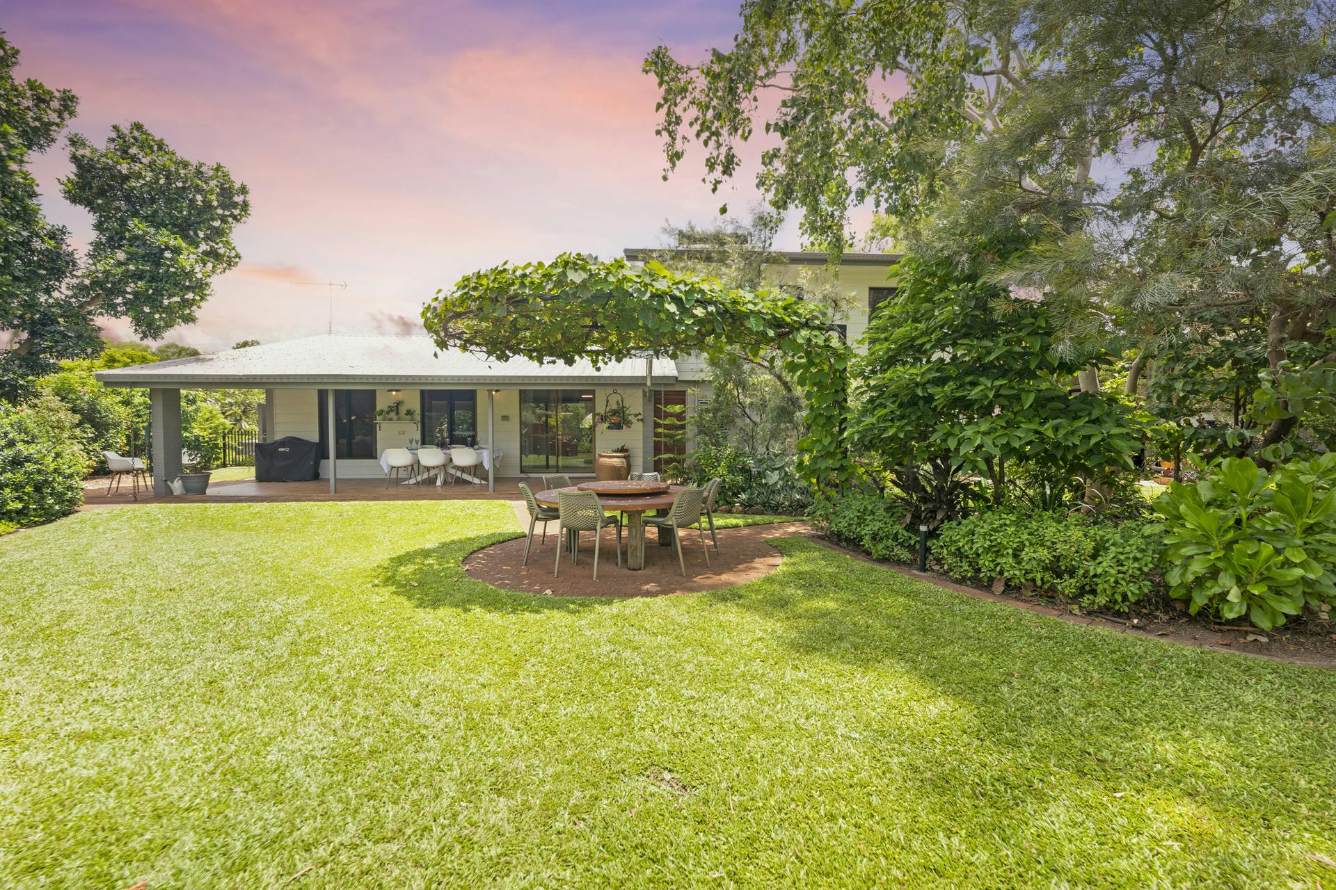 • Undercover verandah which overlooks the magnificent gardens is ideal for alfresco dining and relaxed entertaining; a second outdoor alfresco setting is positioned in the garden itself and is shaded with a charming overhead grape vine covered structure
