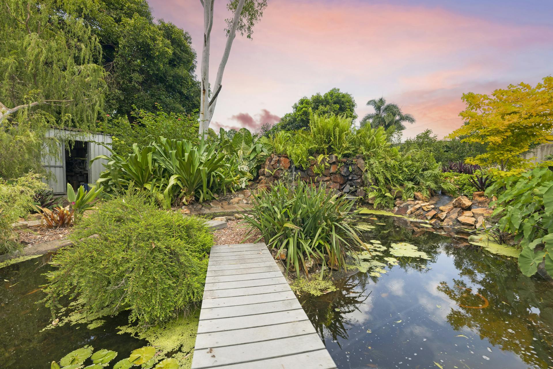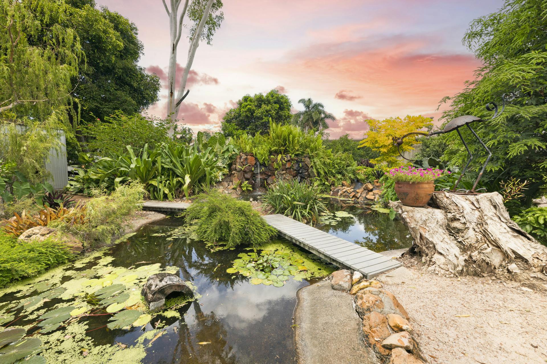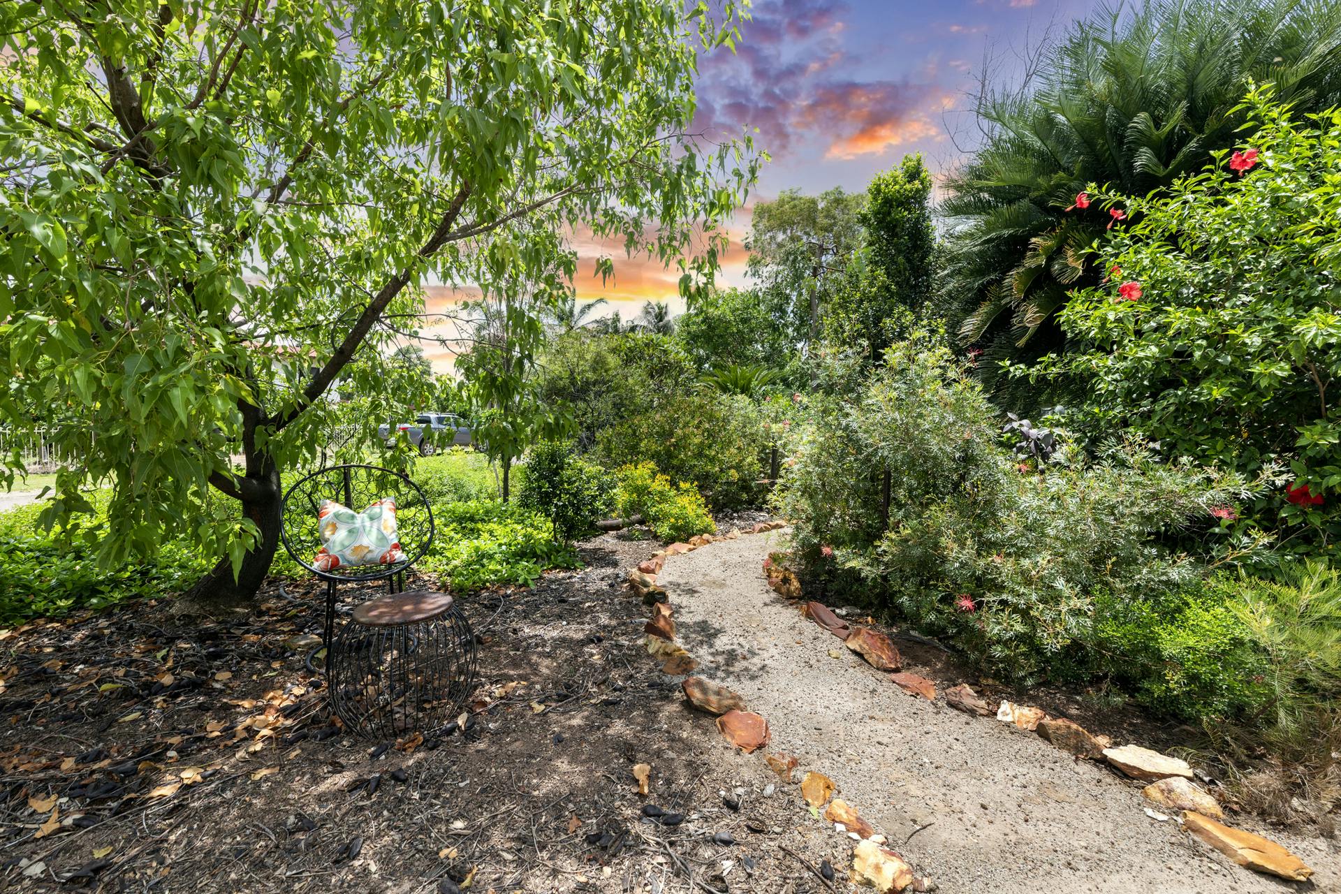 On the market for the very first time since being built in 1986 and occupied since by the owner/builder, is this breathtaking split level four-bedroom family home immaculately presented on an incredible 2,000sqm landscaped paradise, which was originally the fertile land of the original Chinese Market Gardens. Boasting a spacious open floor plan layout with three large bedrooms with mirrored robes upstairs and upgraded to include a self-contained one-bedroom unit on the ground level. The sprawling gardens of this home are truly something to marvel, with an array of exotic fruiting trees, giant fishpond with waterfall and walk over bridge, fire pit, built in outdoor brick BBQ, alfresco outdoor setting with delightful overhead grape vine covered shade. Charming garden pathways carve through the beautiful native gardens creating that extra special appeal. The home also features a large, powered garage, impressive double undercover carport extension with automatic roller doors and giant fan.What we love about this home: