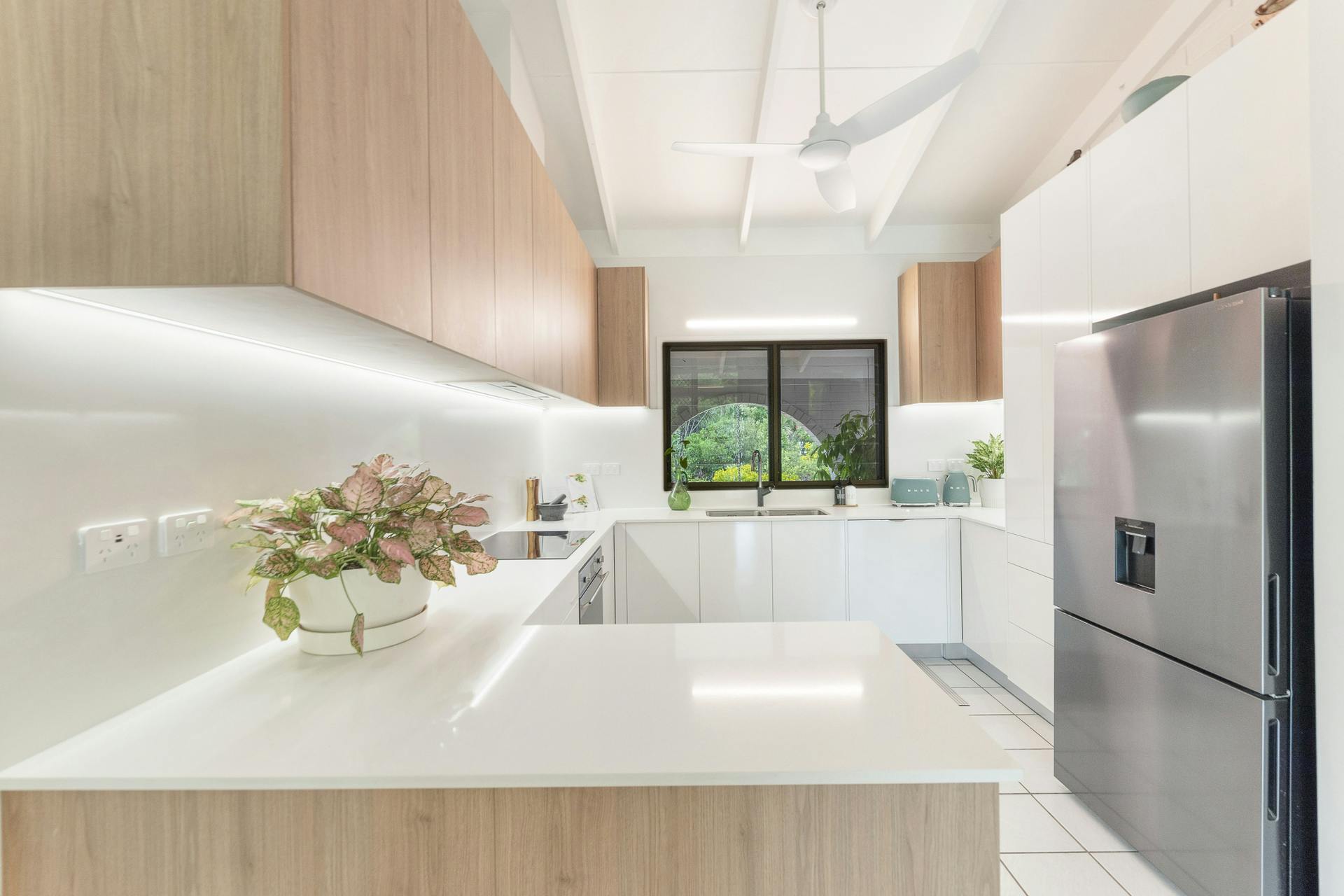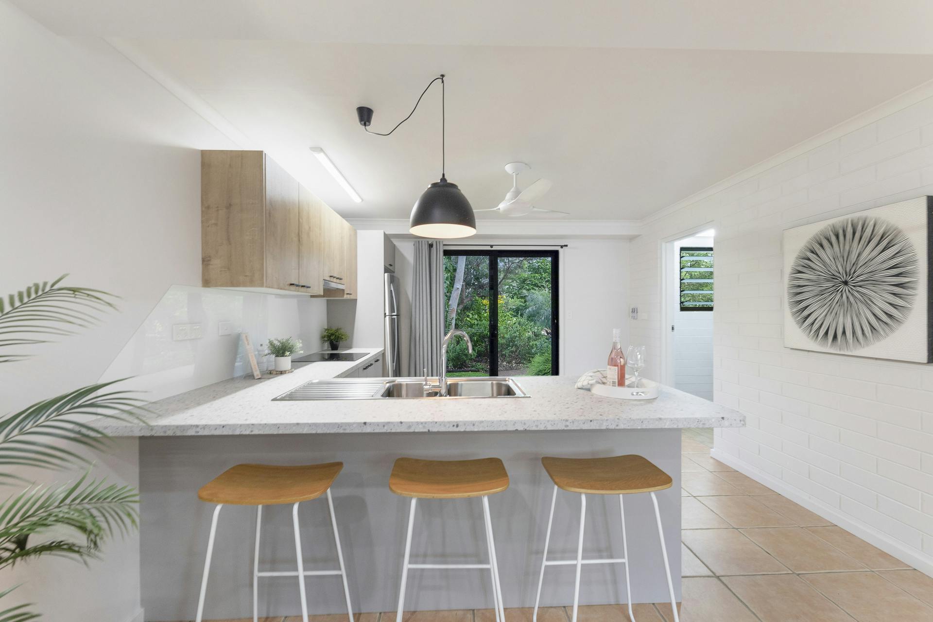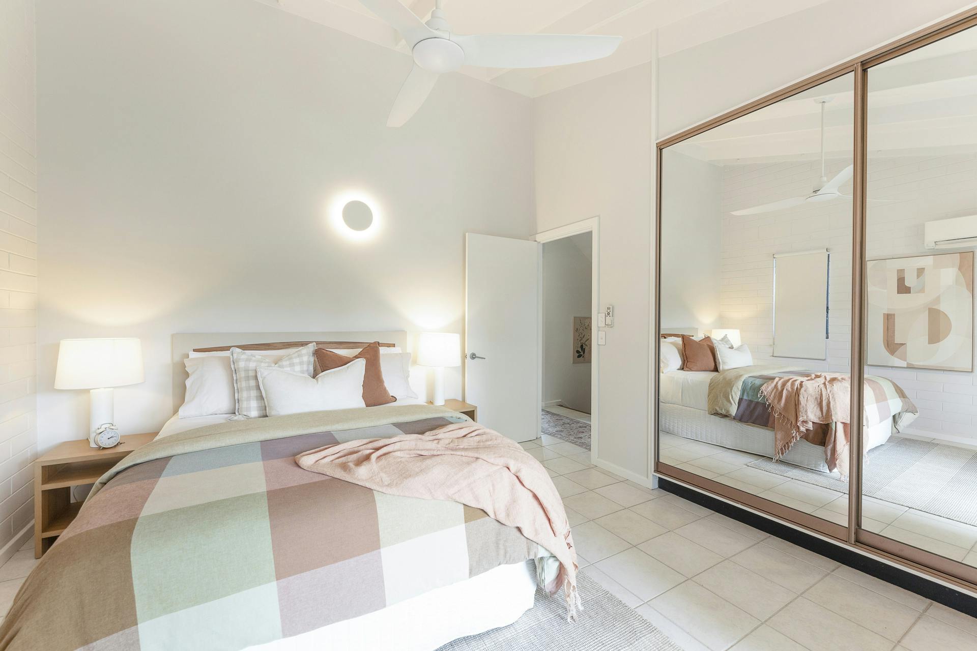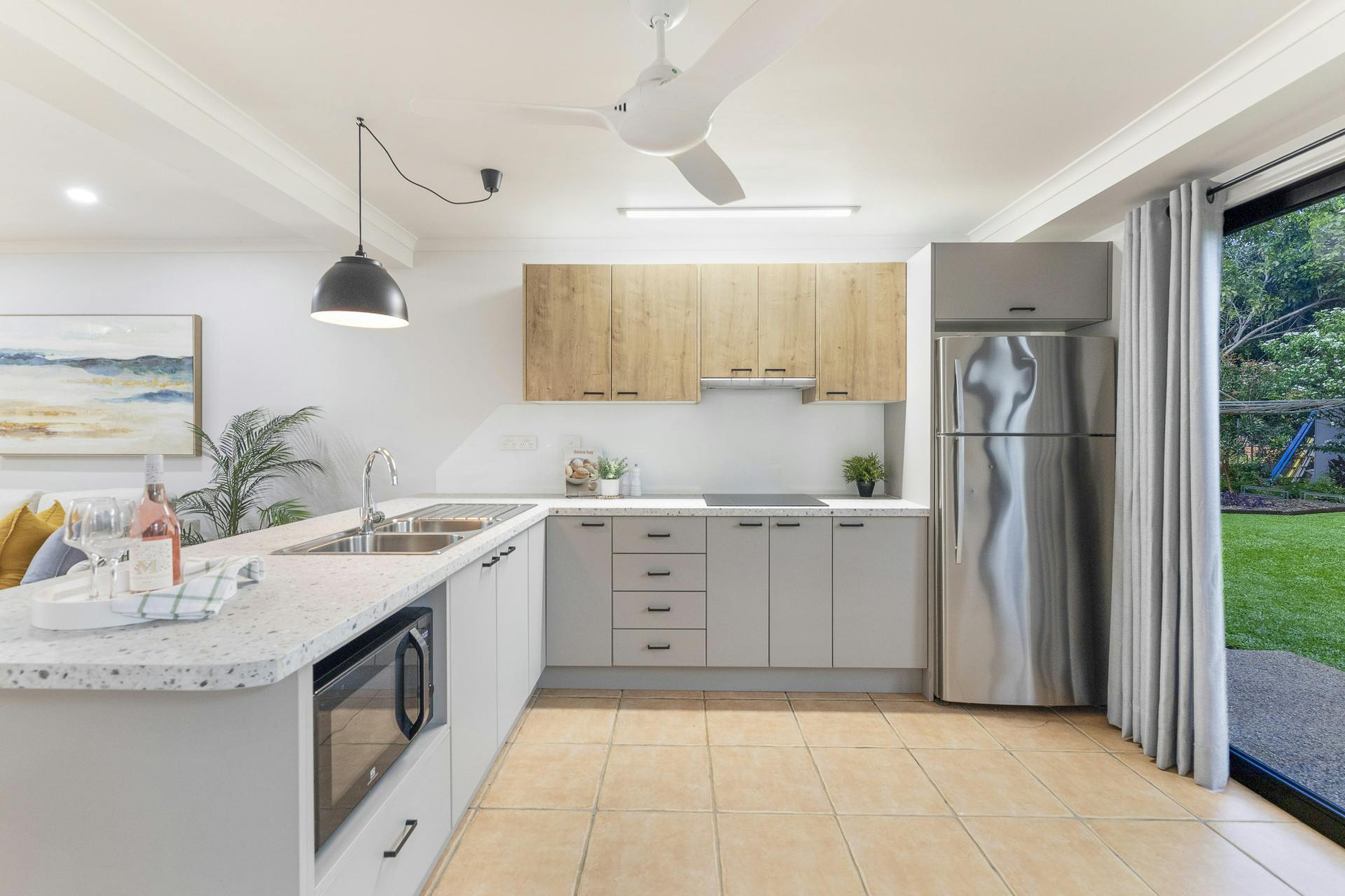 • Ceramic floor tiles, elegant ceiling fans, split-system air conditioning throughout with timeless classic exposed beam cathedral ceilings