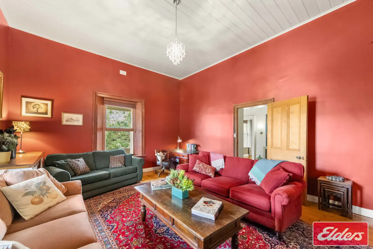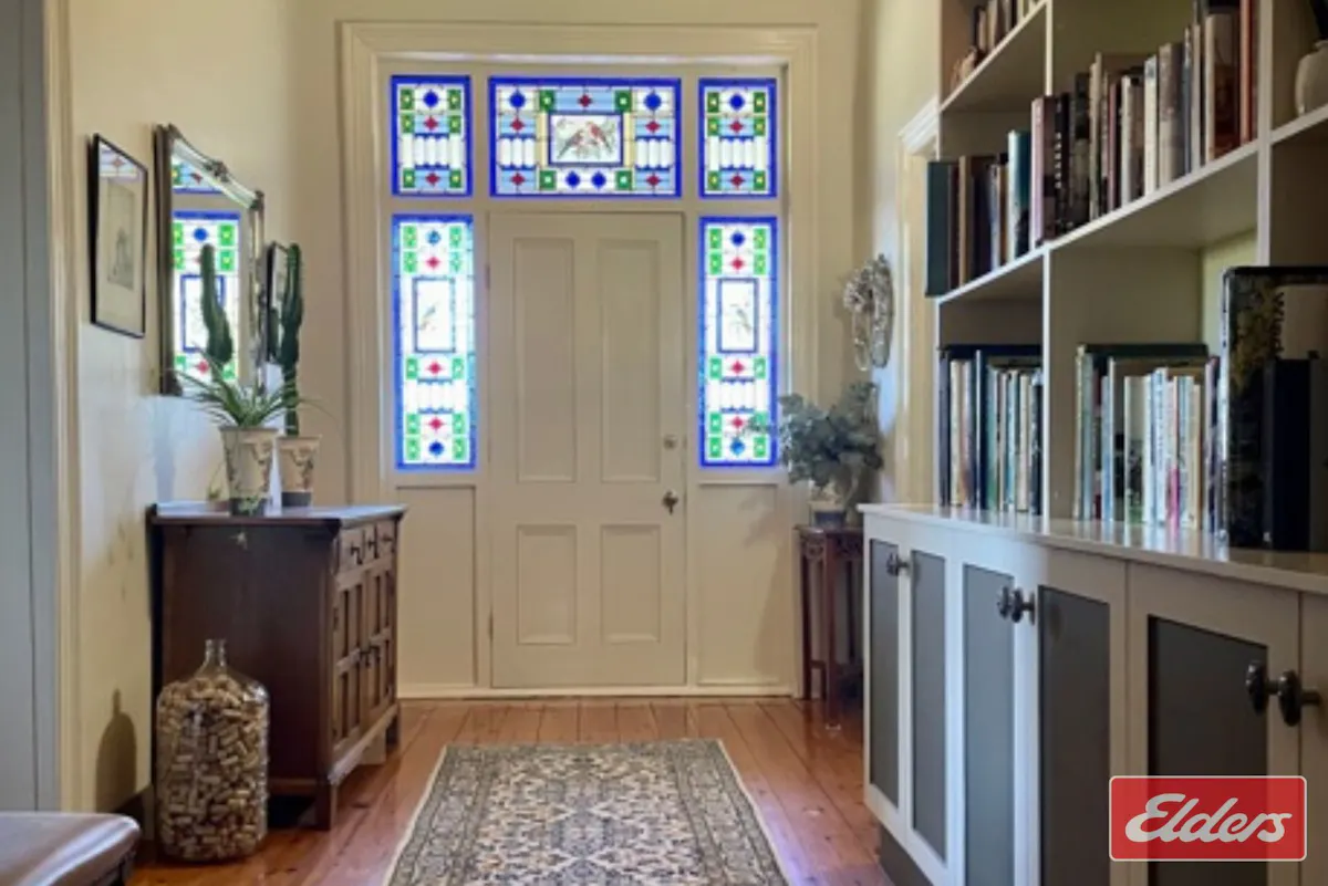 This beautiful 2 bedroomed original farmhouse is hidden away behind majestic gum trees and with a complete wrap around veranda that will charm you at first sight.Upon entry an impressive hallway greets you with original hardwood timber flooring and a front door which is surrounded by fantastic lead-light windows. Along one side of the hallway is a built-in floor to ceiling bookshelf with cupboards at base for extra storage.