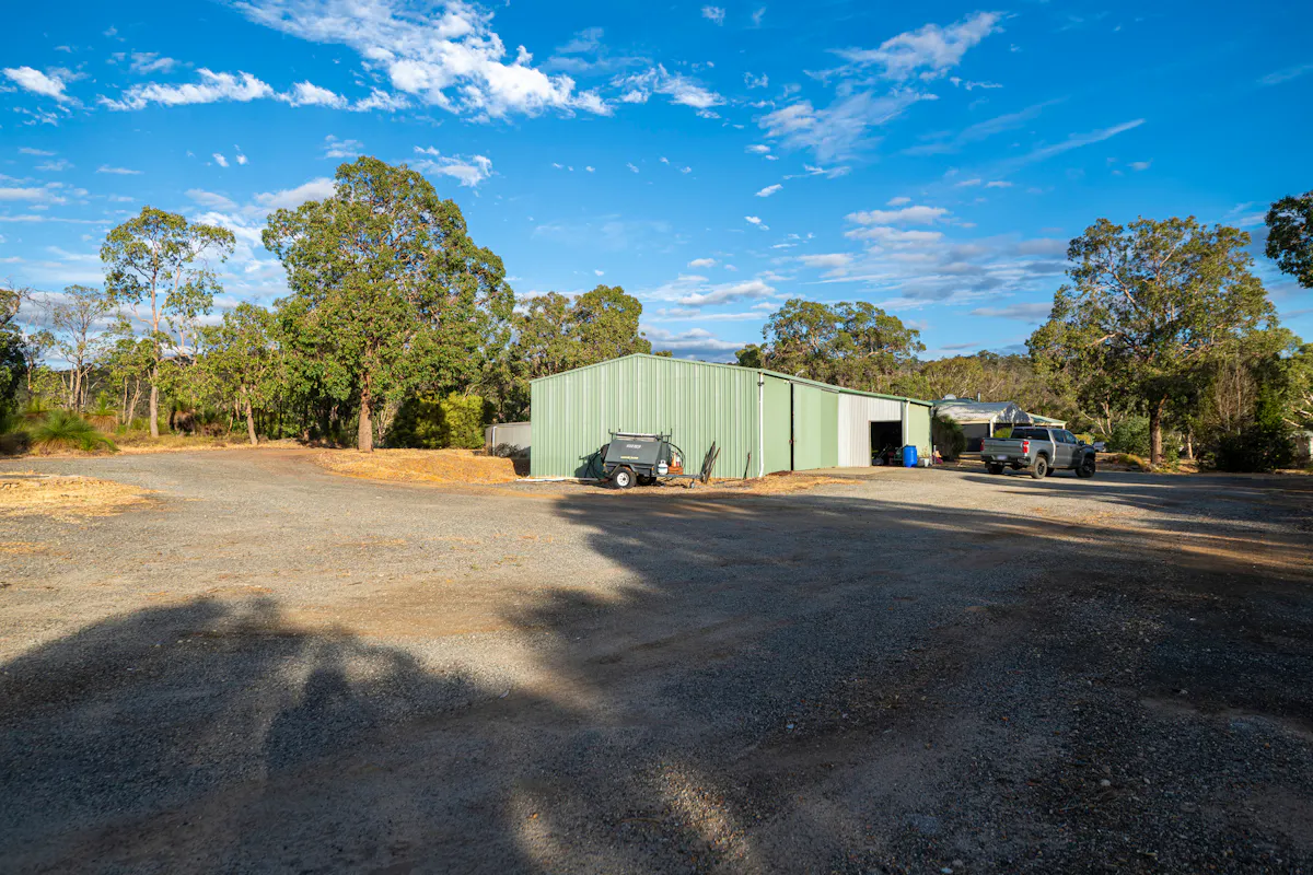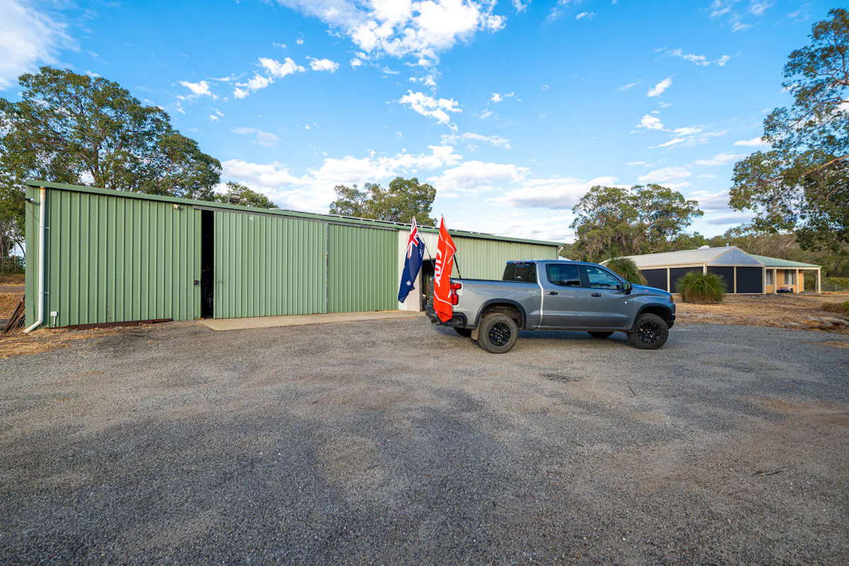 BONUS : MASSIVE 18m x 12m 3 Phase power HIGH TRUSS CLEARANCE - mezzanine storage shed ideal for trades - rigid / tray back trucks / bobcat - boat - horse float - caravan - 4 x 4 - motorbikes etc PLUS ginormous HARDSTAND / driveway