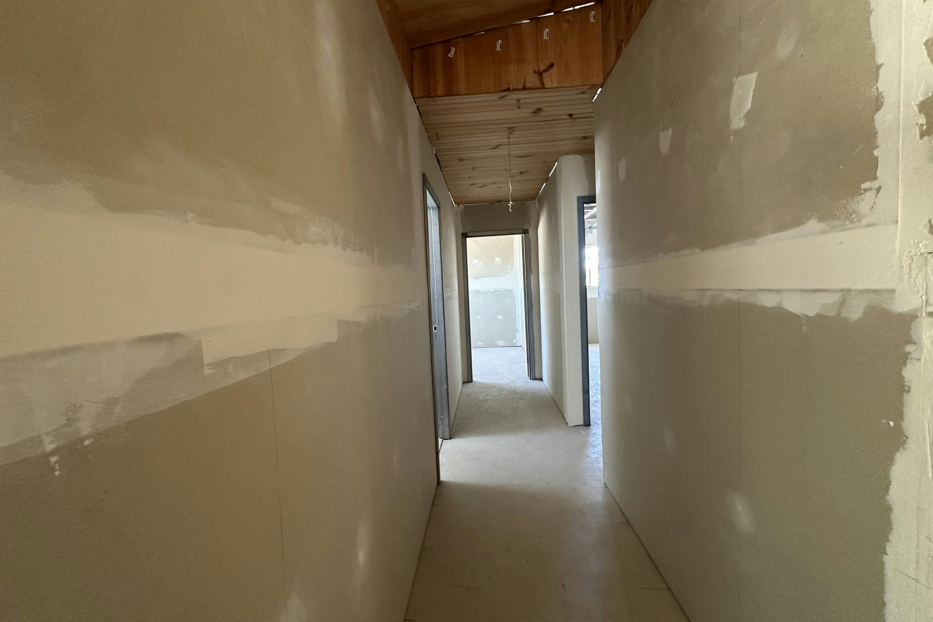 The home offers three bedrooms. The master includes a walk-in robe, and bedroom two has a built-in recess ready for additional storage. All electrical wiring has been professionally completed by a qualified electrician, and the plumbing is fully connected to mains sewerage.