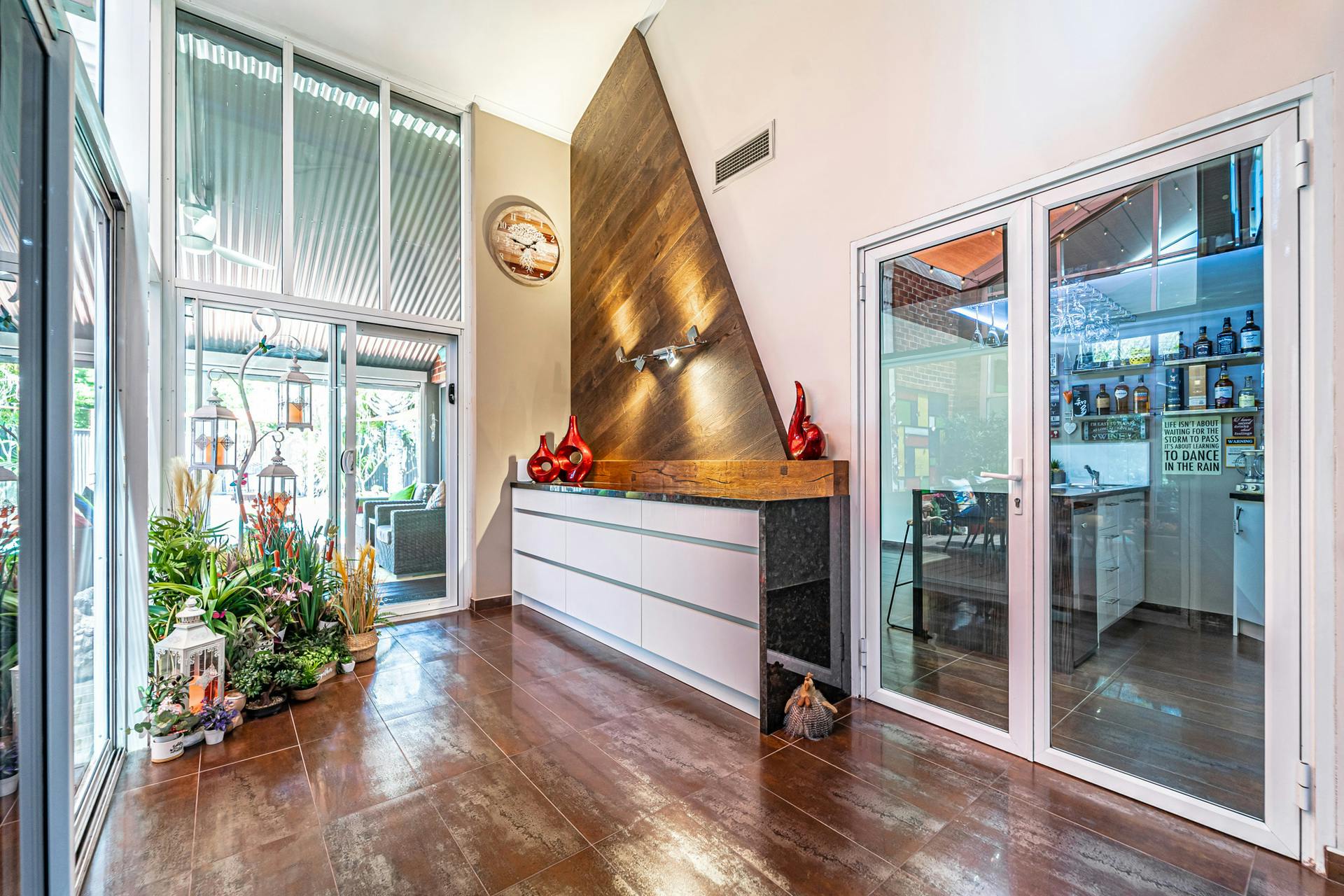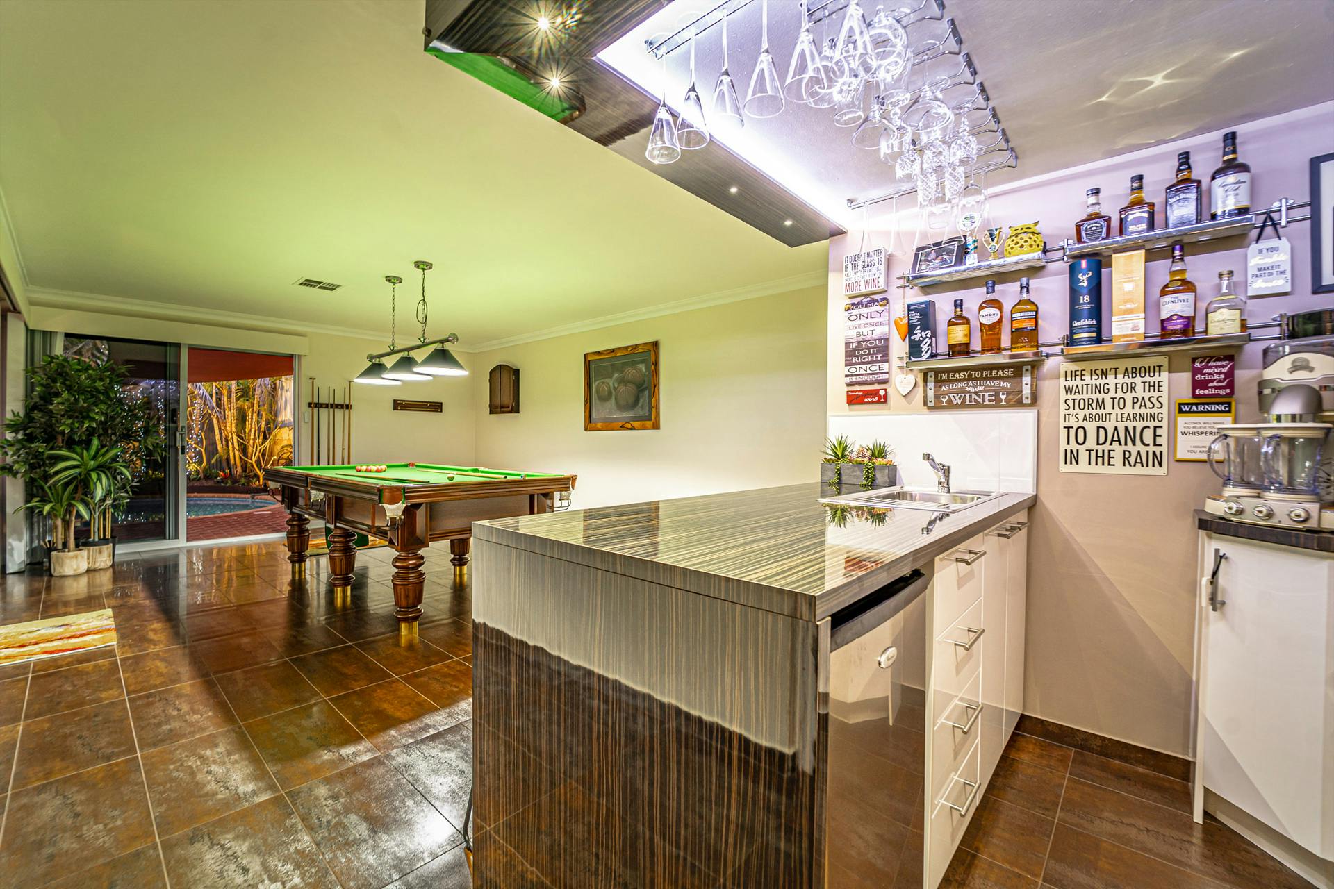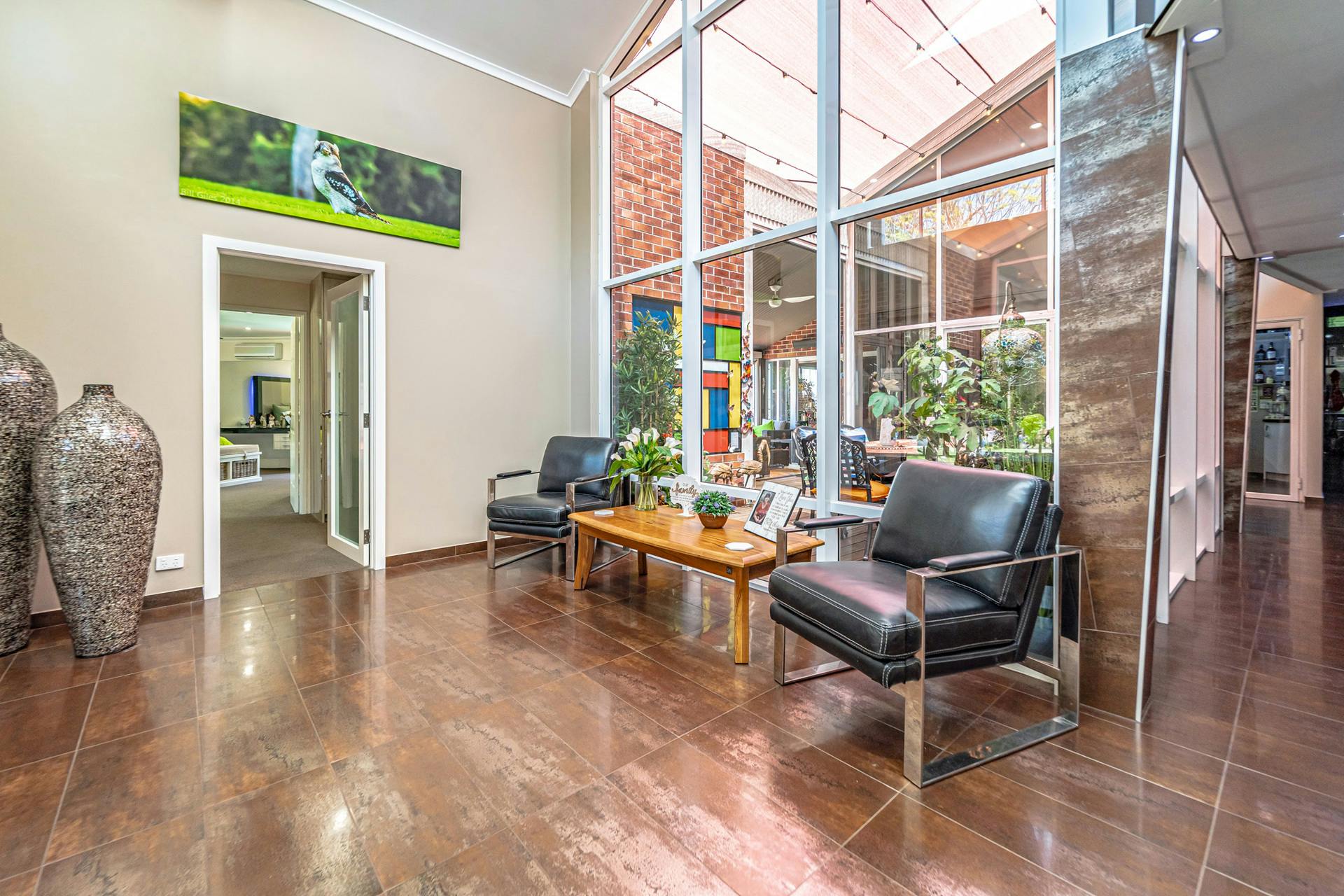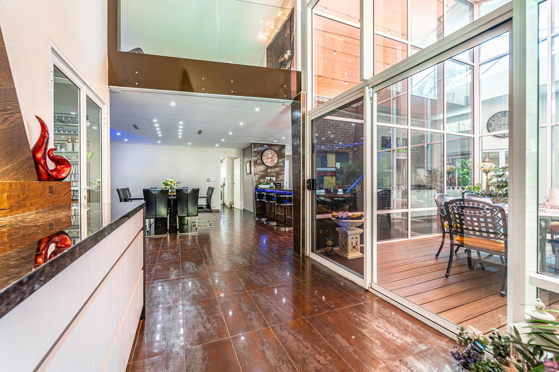 Upstairs is a custom designed mezzanine level, complete with a living area, sauna room, and study space perfect for a home office to work or study.