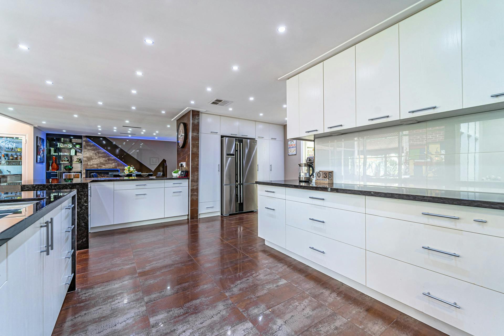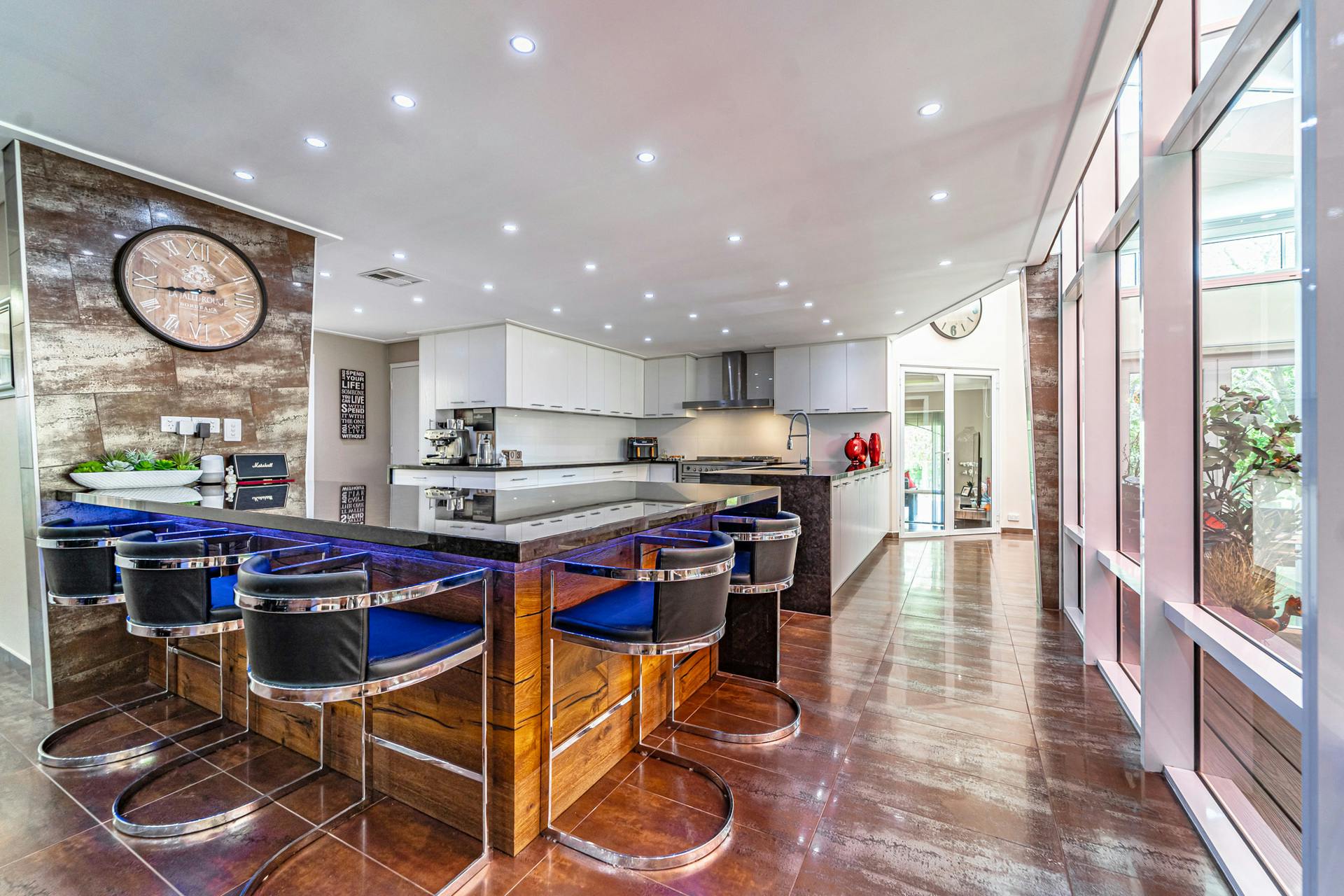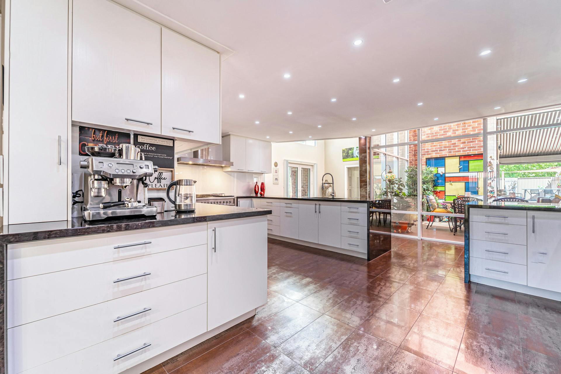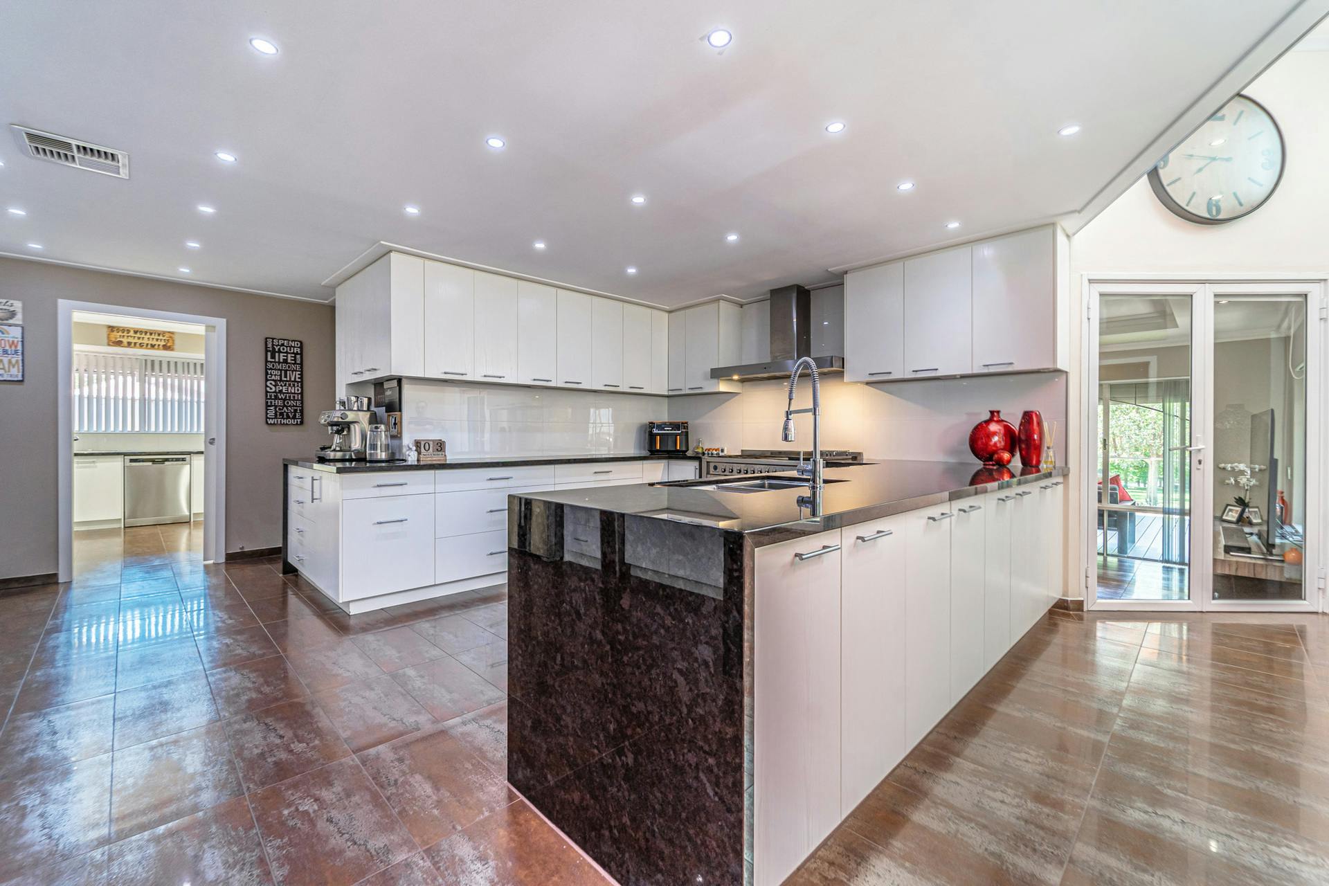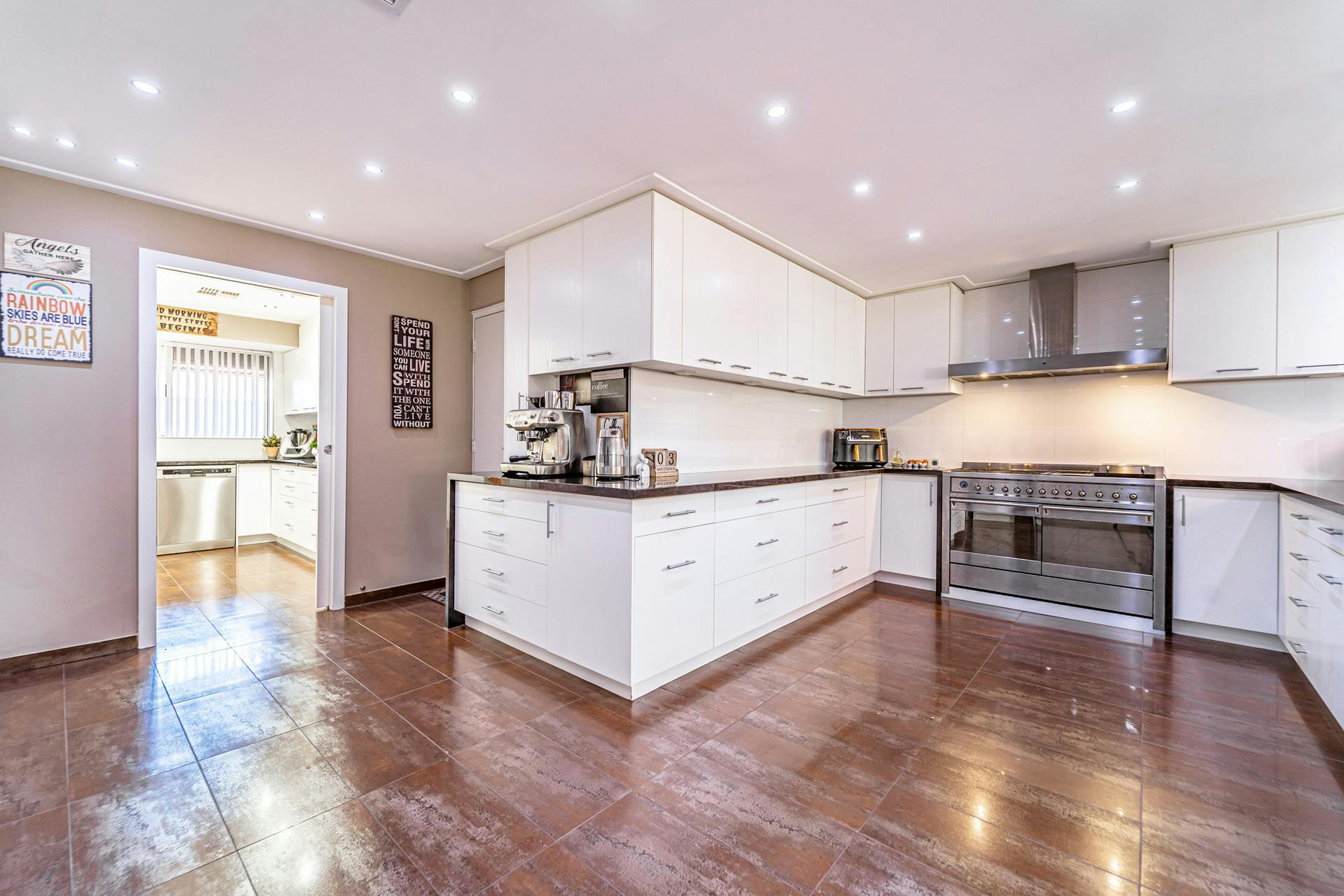 Luxurious chef’s kitchen with granite stone benchtops, 1200mm Smeg freestanding oven, dishwasher, soft close cabinetry, quality fixtures and fittings, and extensive storage space, including a fully equipped butler’s pantry/scullery & undermounted sink