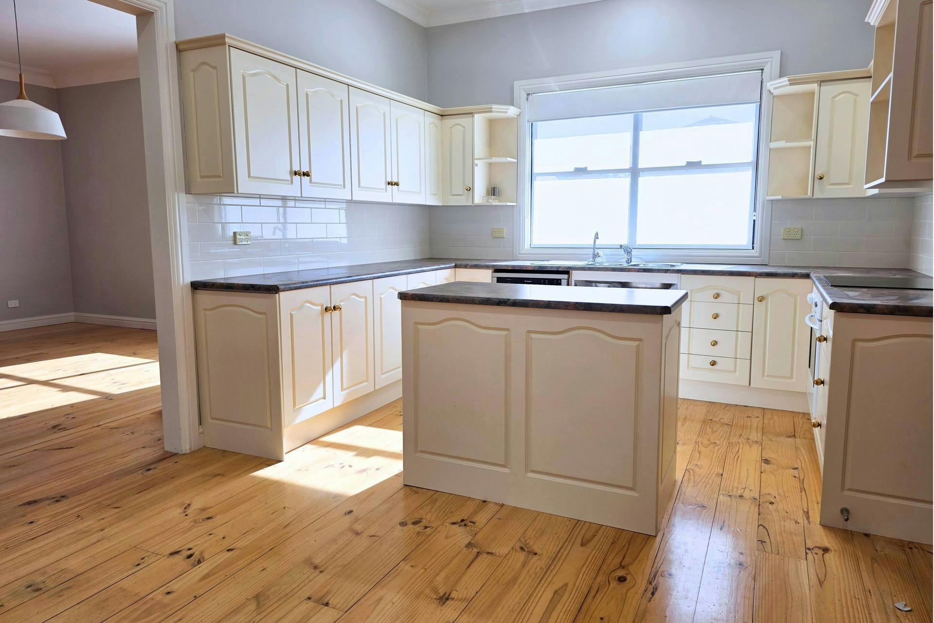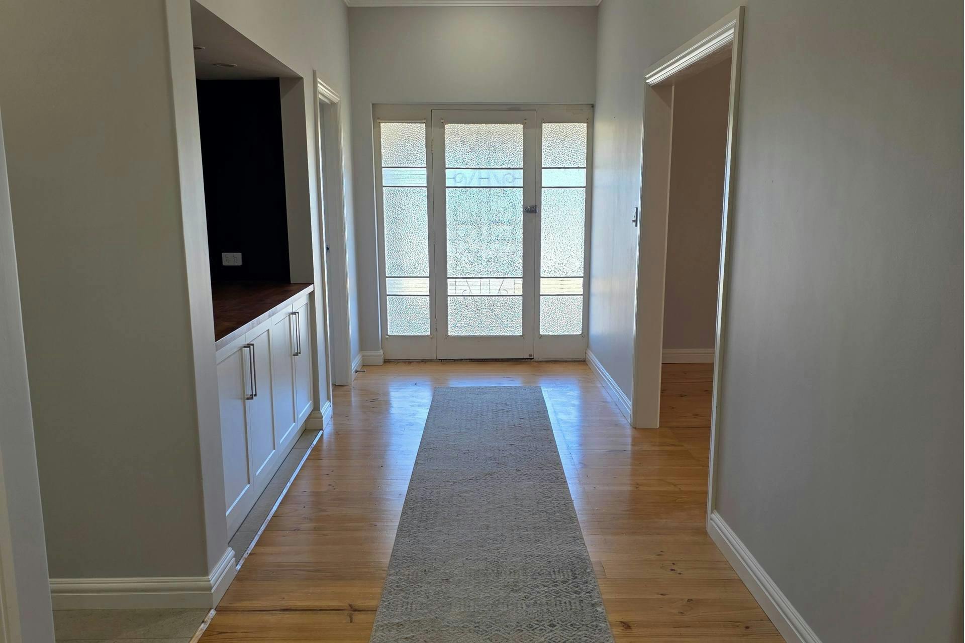 As you enter, natural light dances across the original polished floorboards, complemented by decorative high ceilings that flow throughout. A charming picture nook in the entryway provides the perfect space to showcase family photos or treasured keepsakes.