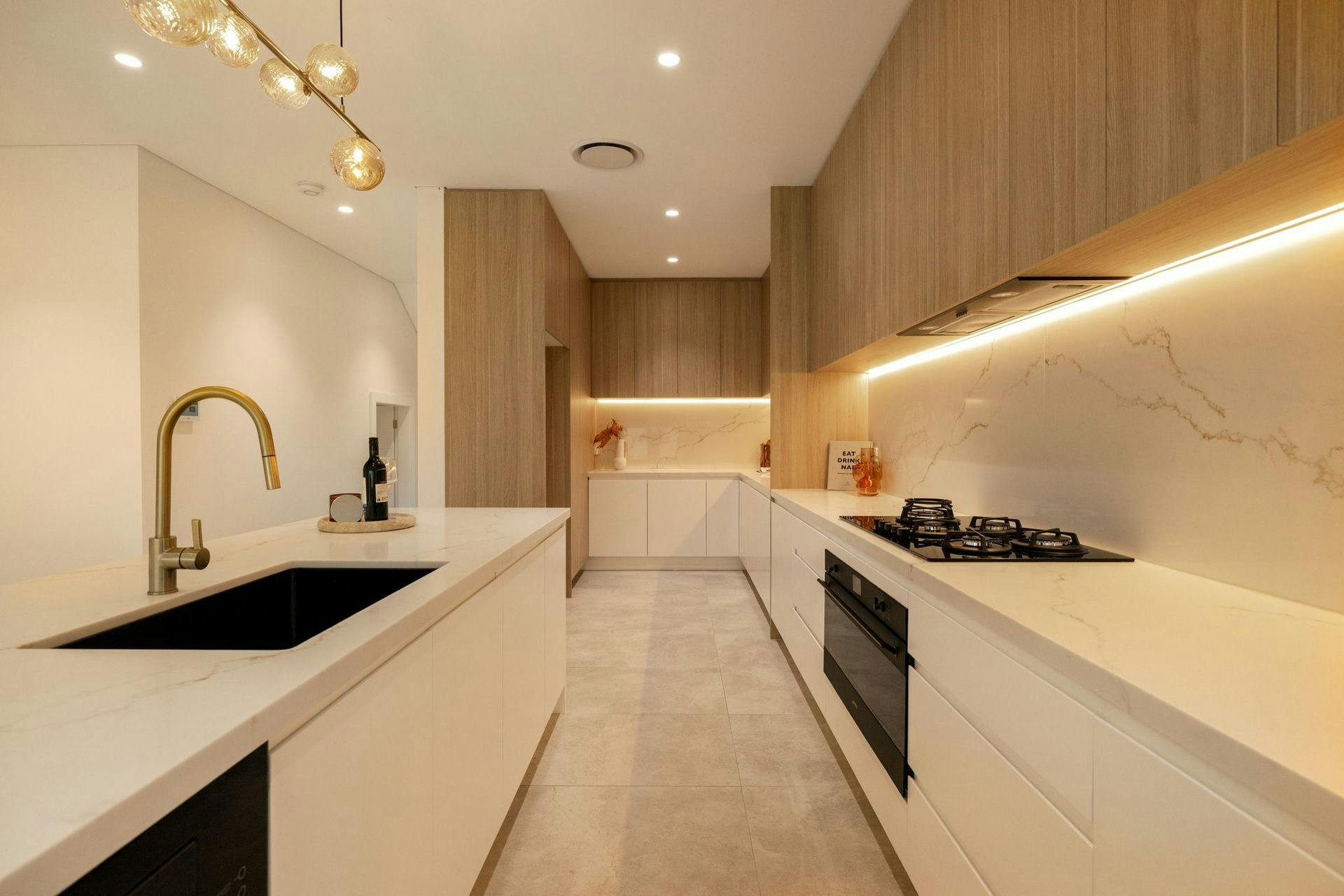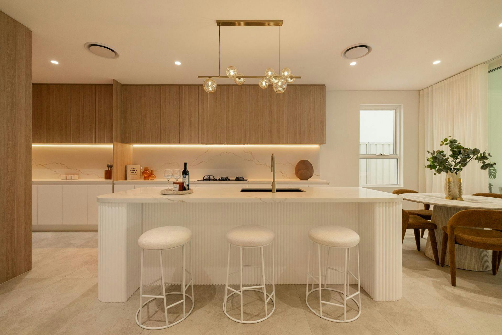 - Designer kitchen with stone island, premium appliances and butlers pantry