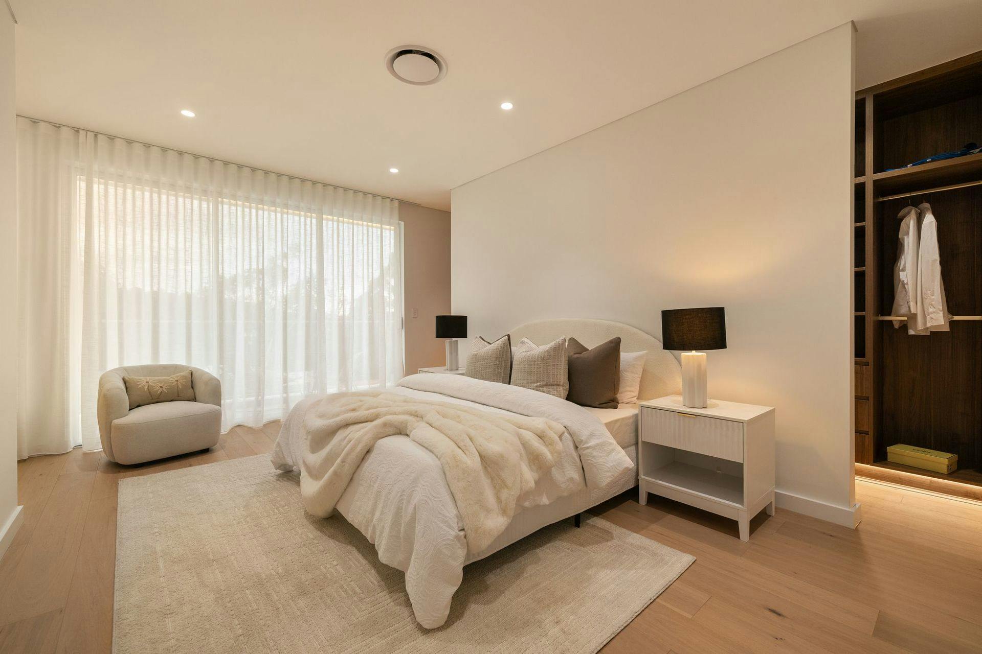 - Four bedrooms upstairs with bespoke cabinetry and generous proportions