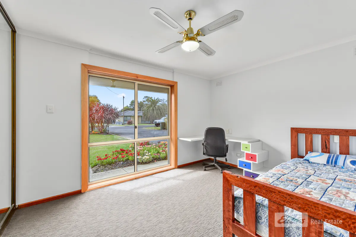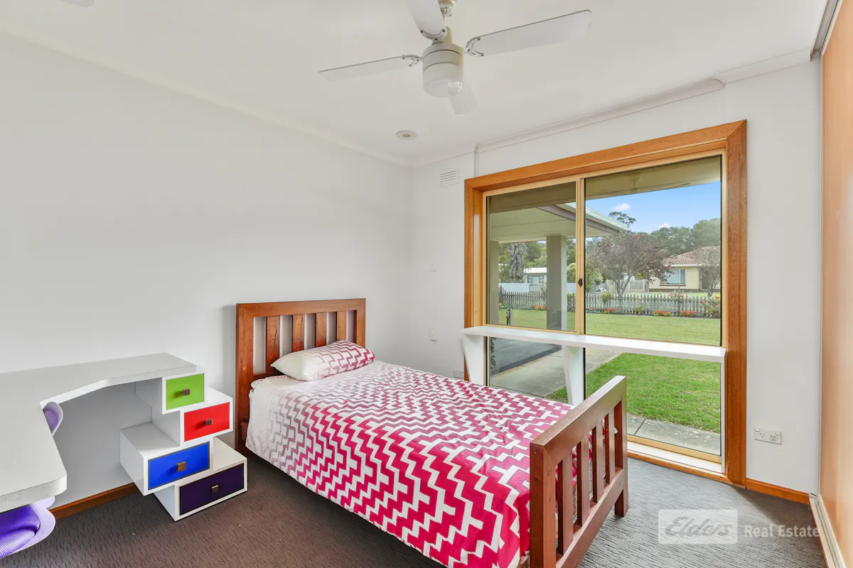 Bedrooms two, three, and four all include built-in robes, built-in desks that are easy to remove, ceiling fans, carpet flooring, and heat shifters, while bedroom five also offers built-in robes and carpet-ideal for a large family or flexible use as a home office.