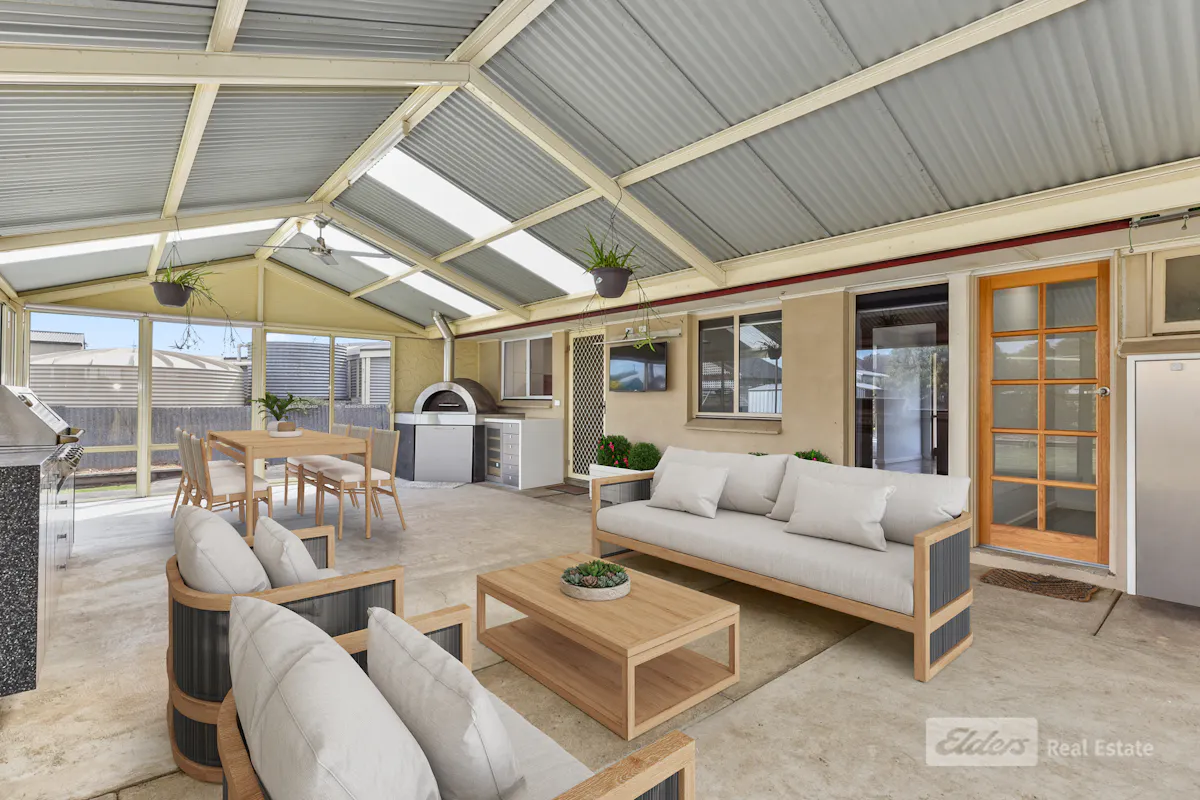 Designed with entertaining in mind, the fully enclosed pergola area is a standout feature. Complete with Colorbond windows, glass sliding doors, sidetrack roller blinds, concrete flooring, lighting, and power, it also boasts a built-in BBQ, cabinetry, and a wood-fired pizza oven-making it an ideal space for year-round gatherings.