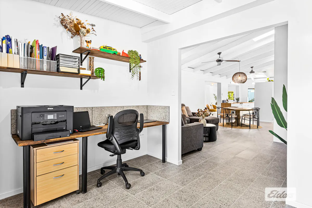 The home comprises three generous bedrooms, each complete with walk-in robes, along with two stylishly renovated bathrooms and a dedicated study nook, ideal for those working from home. Every element has been considered to deliver a balance of practicality and relaxed lifestyle living.
