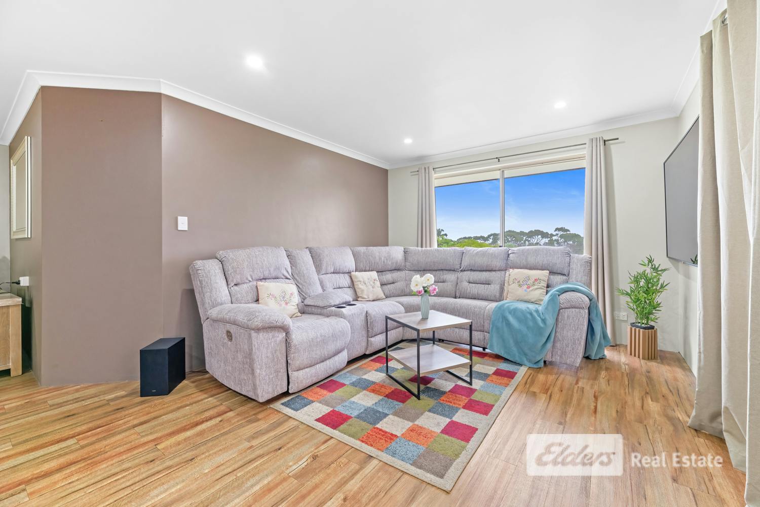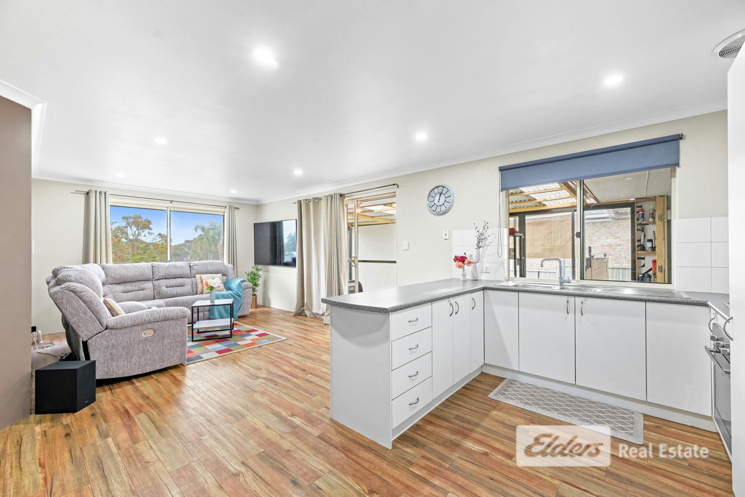 This is the kind of property that feels instantly comfortable the moment you walk in. The unique entry statement will always cheer your day, a happy moment as you enter the light filled, practical, and welcoming home. There are spaces here everyone can enjoy-whether it's relaxing in the separate lounge, or gathering with family or friends while cooking up a meal either inside or outside. Kids will love the level yard for a trampoline or to kick a ball, and everyone will appreciate the proximity to the local shopping centre, as well as town and beaches. The elevated position is a brilliant plus as you look out to treetops and rural land in the near distance, superb for feeling unburdened instead of hemmed in.