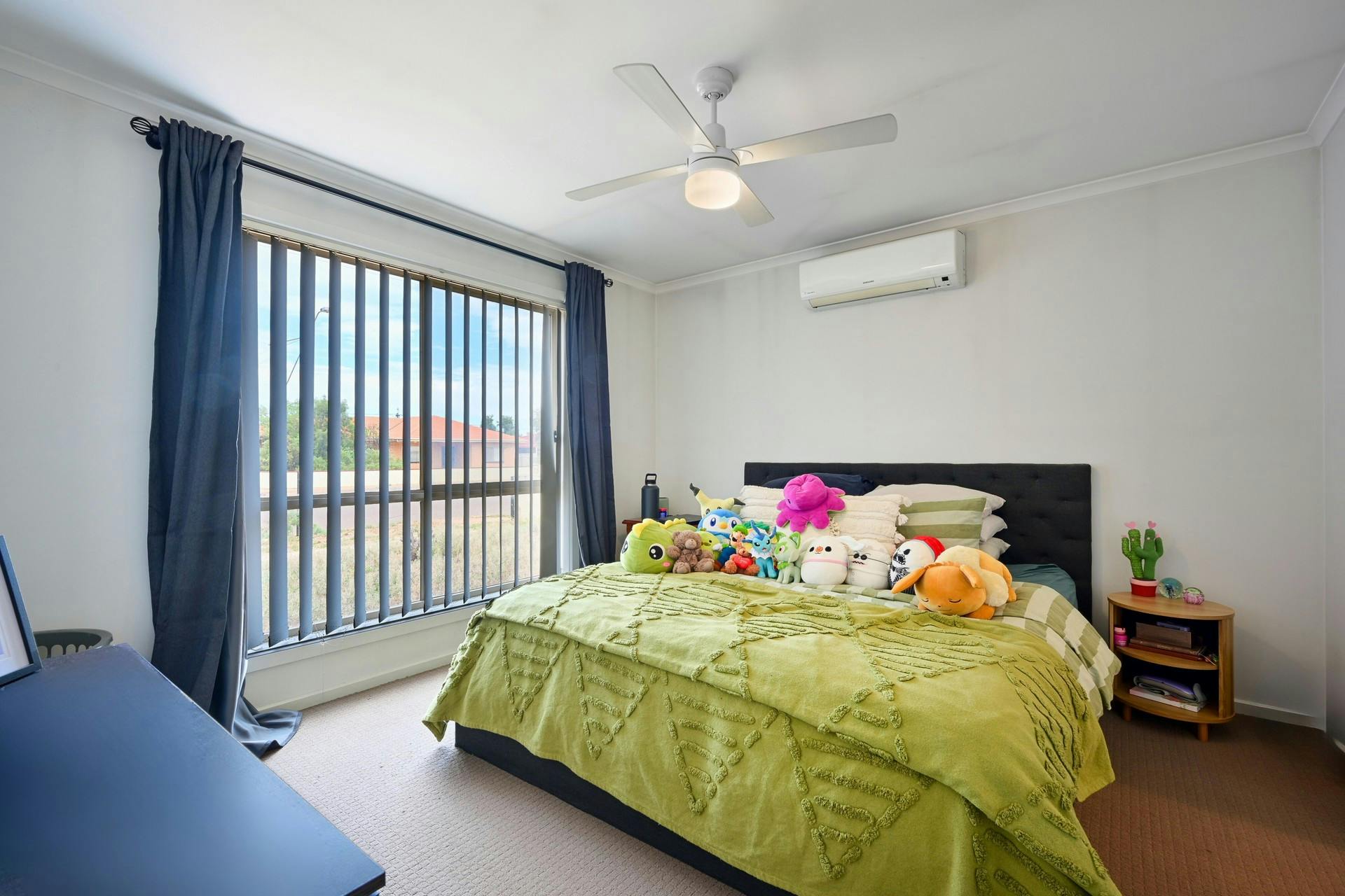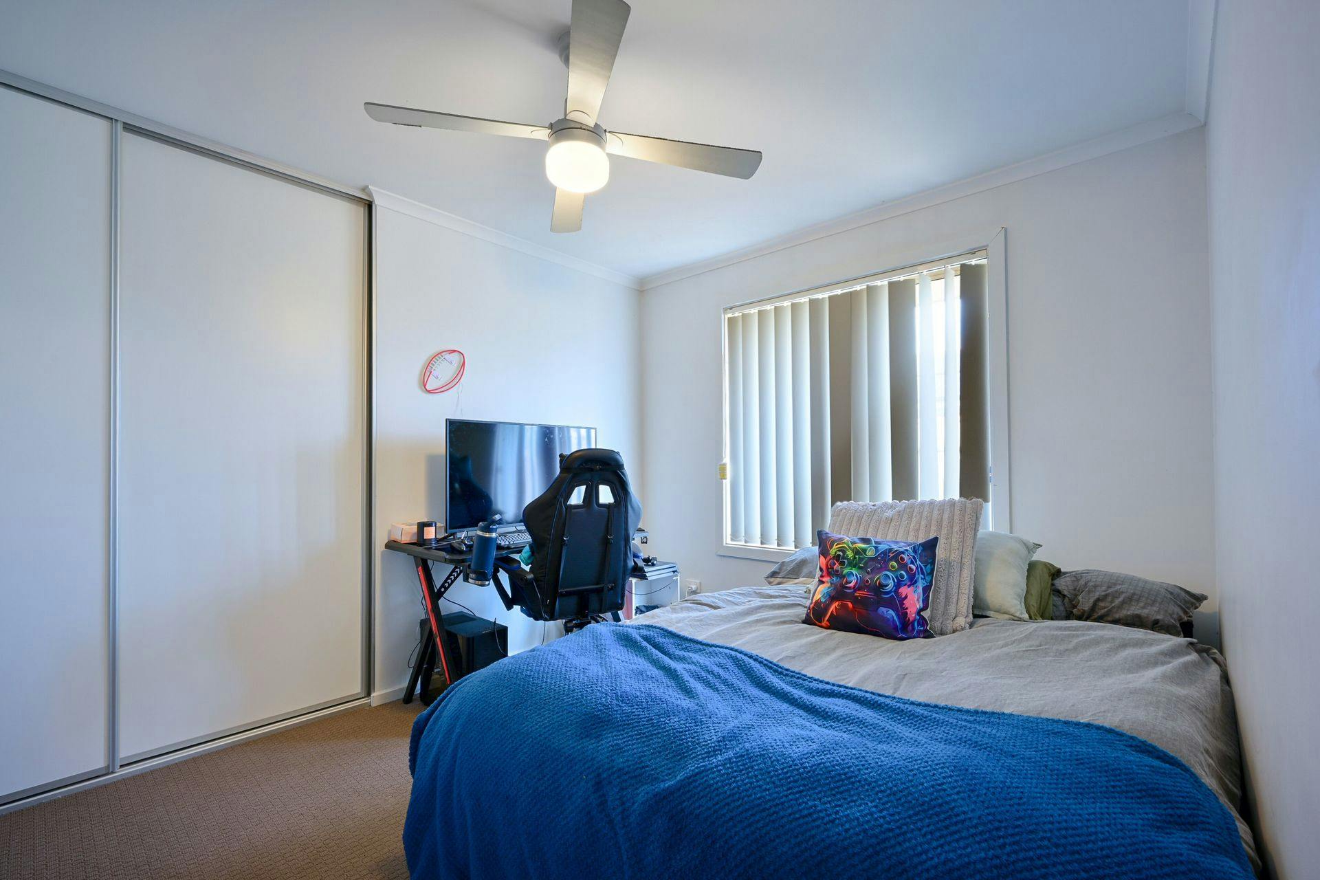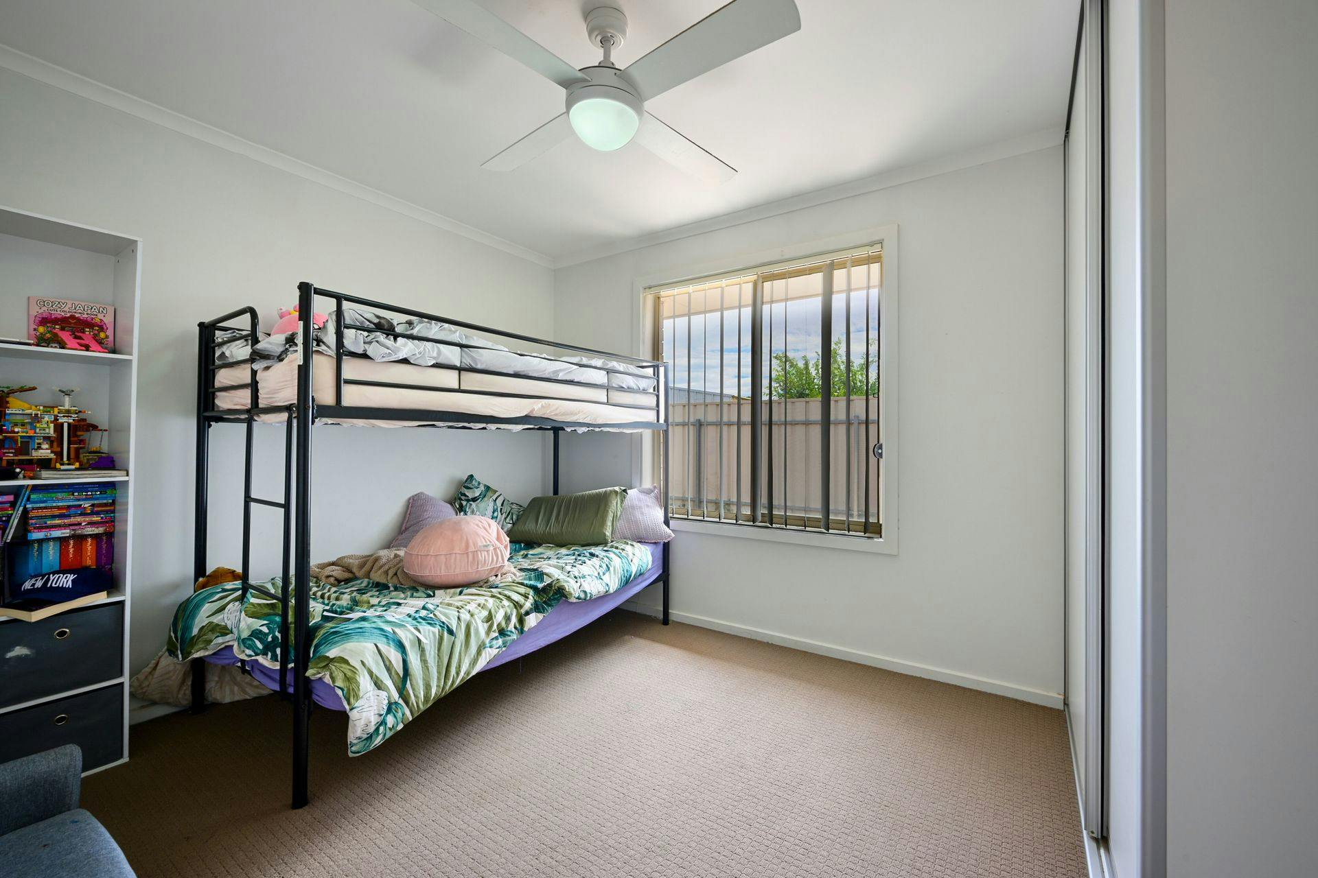 Four carpeted bedrooms, three with ceiling fans, two with built-in robes