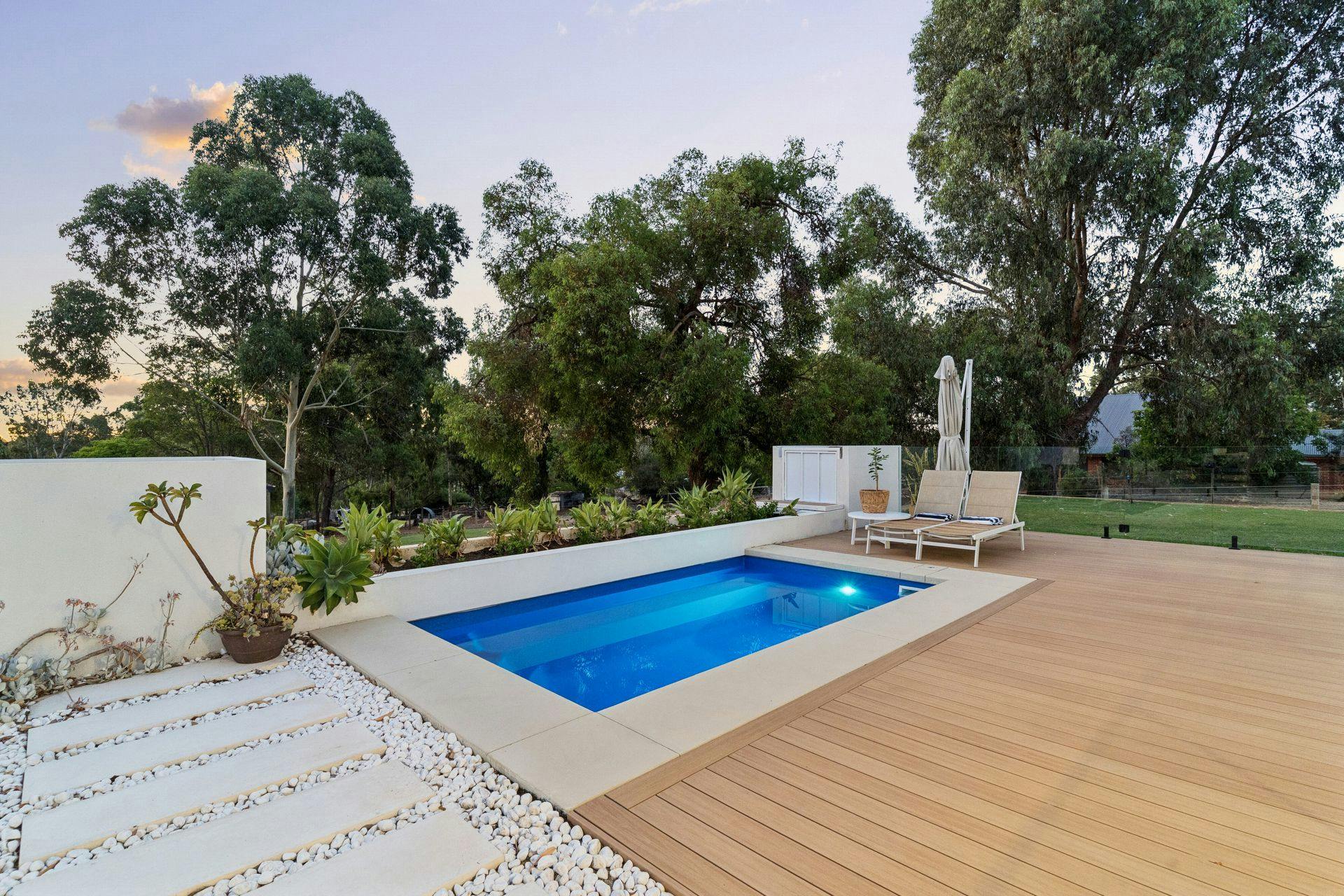 - Sparkling below ground pool, with a decked surround for poolside entertaining, glass fencing for peace of mind, and landscaped beds for appeal