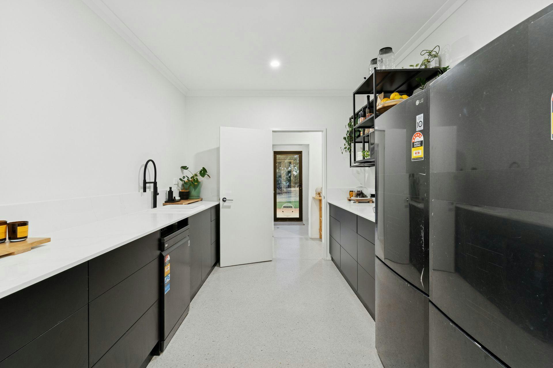 - Large scullery, with extensive cabinetry and bench space, with push to close drawers and both a secondary sink and dishwasher recess