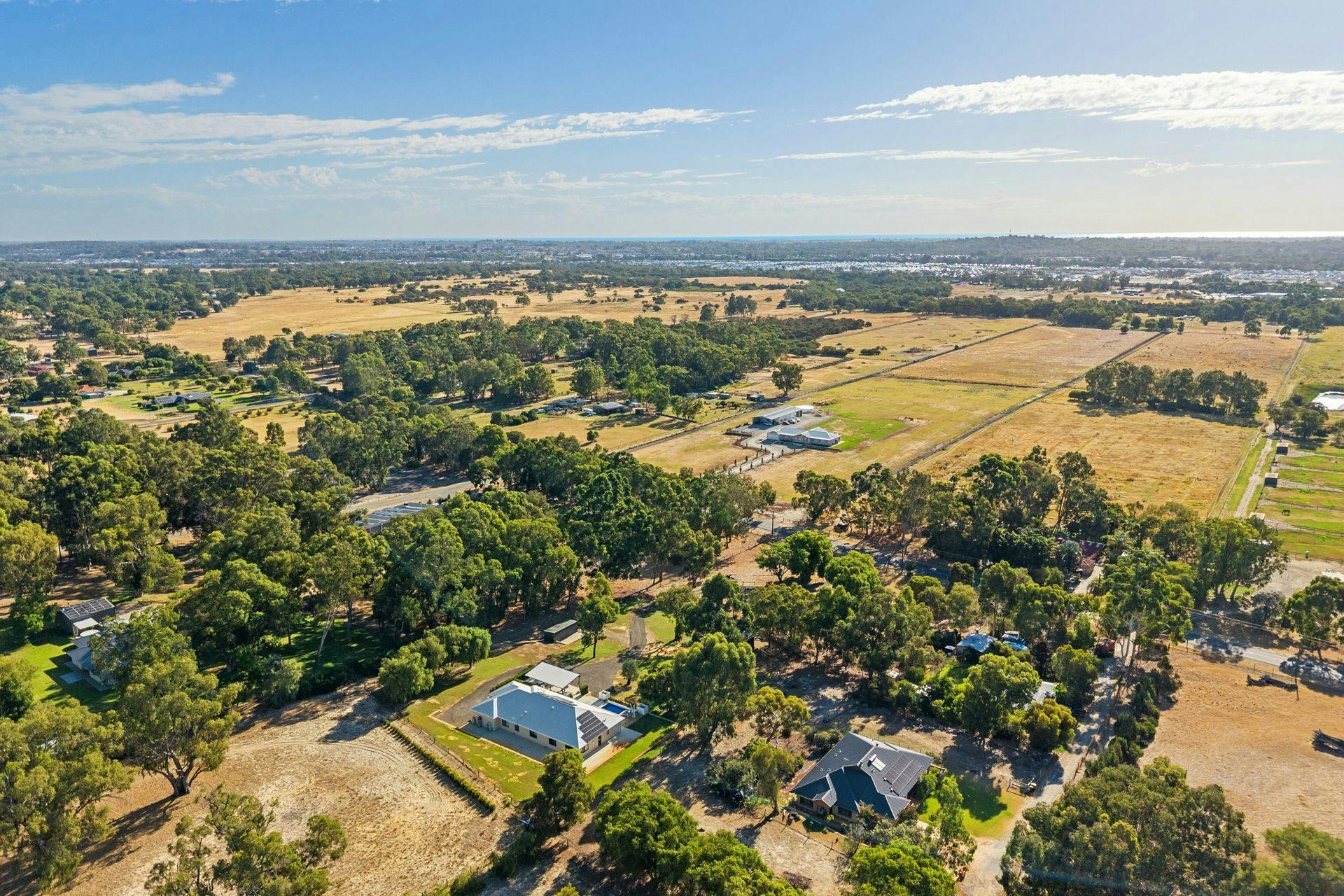 Created to offer luxurious lifestyle living on a tranquil 2.47 acre block, this idyllic haven offers a private sanctuary to call home, with all your essential urban amenities close at hand, and absolute paradise to the surrounds. Designed to ensure comfort and style throughout, every detail has been carefully considered and chosen for both quality and appeal, while the layout ensures flexibility across the interior, and plenty of space for the family to enjoy. Offering up to 5 bedrooms, or 4 plus a study, along with 3 sensational bathrooms, the family's needs are always at the forefront, with an inviting open plan family hub, a fully equipped kitchen and scullery, and a dedicated theatre room included. The gardens directly surrounding the residence have been manicured to perfection, with a glistening below ground pool and an expansive alfresco for entertaining a crowd, with the elevated standing ensuring a pristine vista across the property and beyond. While a double garage is integrated within the home for vehicle parking, and a huge shed or workshop provides plenty of room for any machinery or equipment.Tucked away within the heart of Baldivis' rural surrounds, you are moments away from the popular Aqua Park, with access to the Kwinana Freeway within easy reach and ideal for buyers seeking a straightforward daily commute. The local shopping centre offers a variety of retail and dining options just a quick drive away, with a choice of both public and private schooling equally nearby. And for absolute recreational appeal, you are located within easy distance of the spectacular coastline, with endless white sandy beaches, crystal clear waters and all the delights of both Rockingham and Mandurah close at hand.