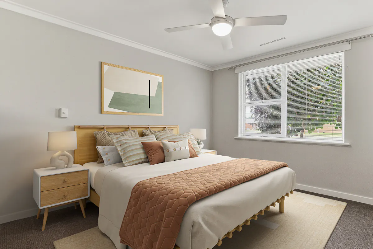 - Two well-spaced bedrooms, both with carpet to the floor and cooling ceiling fans