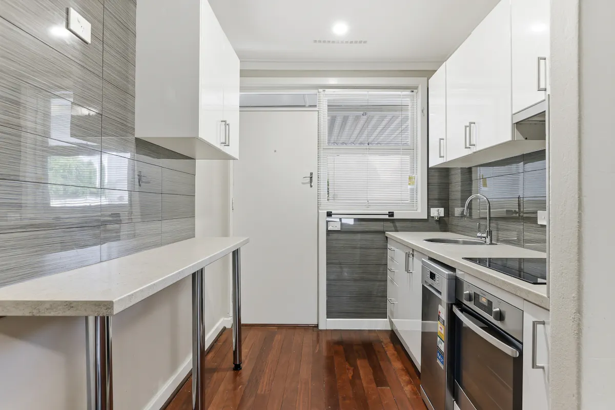 - Renovated kitchen, with an in-built electric oven, cooktop and rangehood, with both upper and lower cabinetry and contemporary tiling throughout