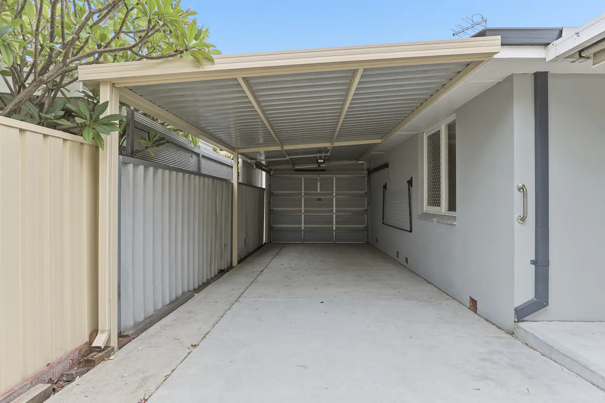 - Carport with roller door entry and open access to the backyard