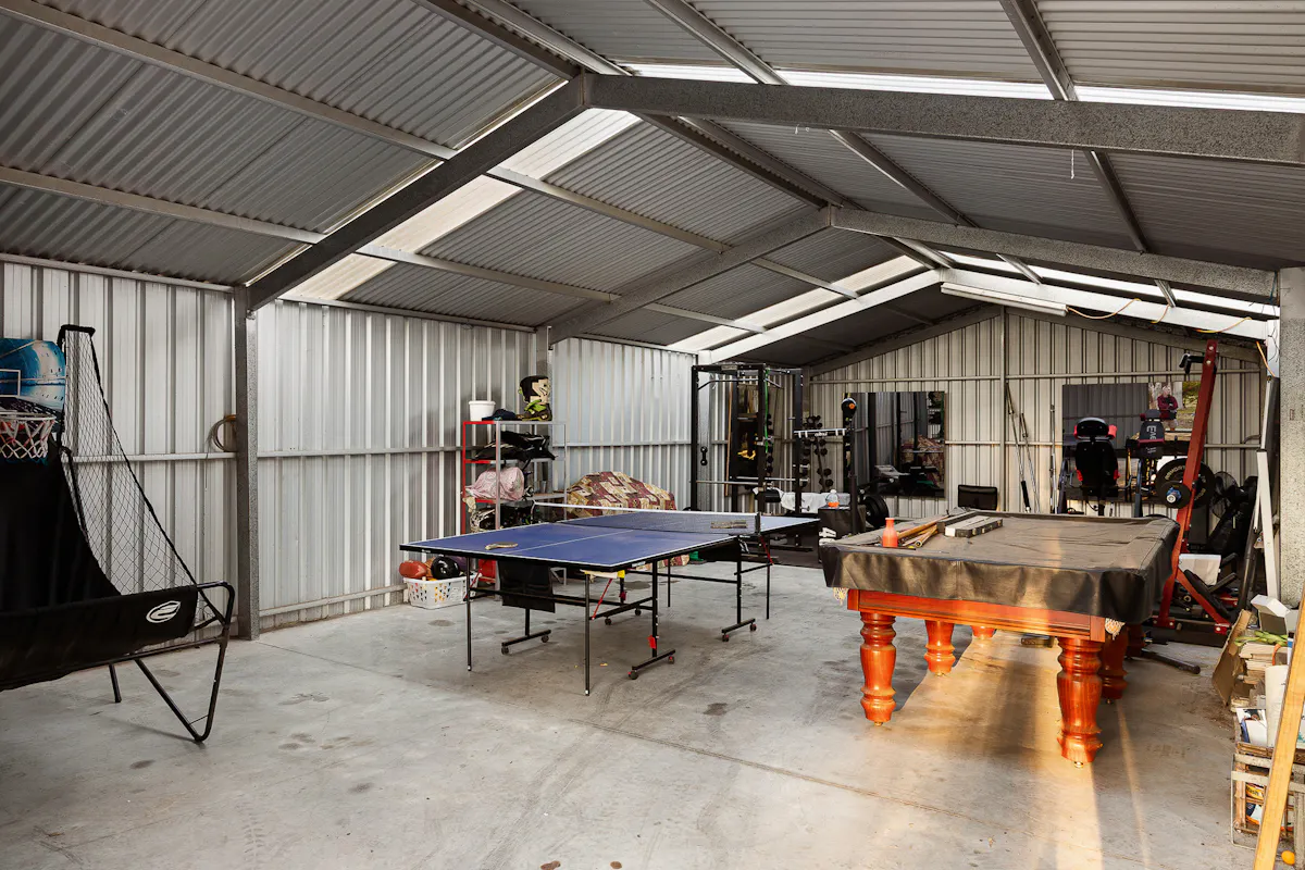 For those needing serious shedding, this property is unmatched. The main 18m x 9m (approx.) workshop includes a mezzanine level set up as a bar and "man cave," complete with a car hoist and external basketball hoop, making it a truly unique space. A second 12m x 6m (approx.) workshop provides additional flexibility for storage, hobbies, or gym use. Extra parking, hardstand areas, and side access complete the package.
