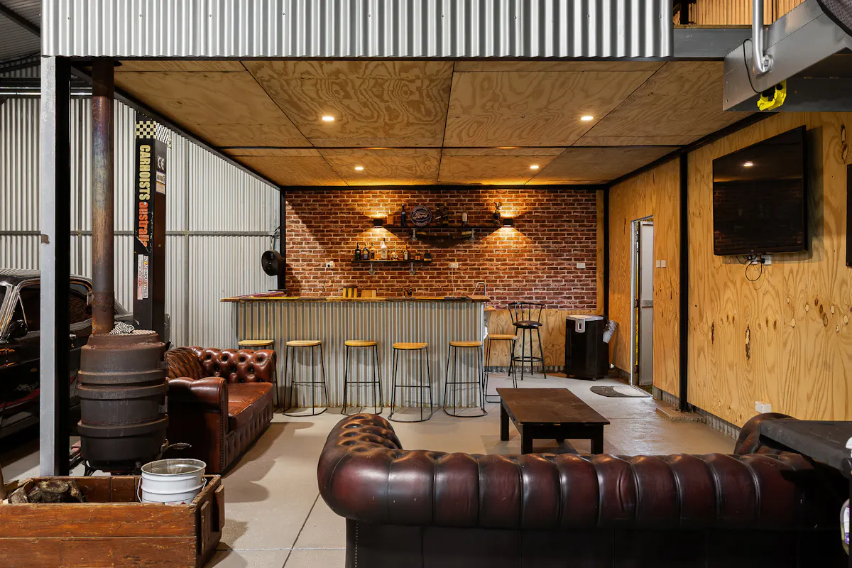 • Massive 18m x 9m workshop with mezzanine bar/man cave