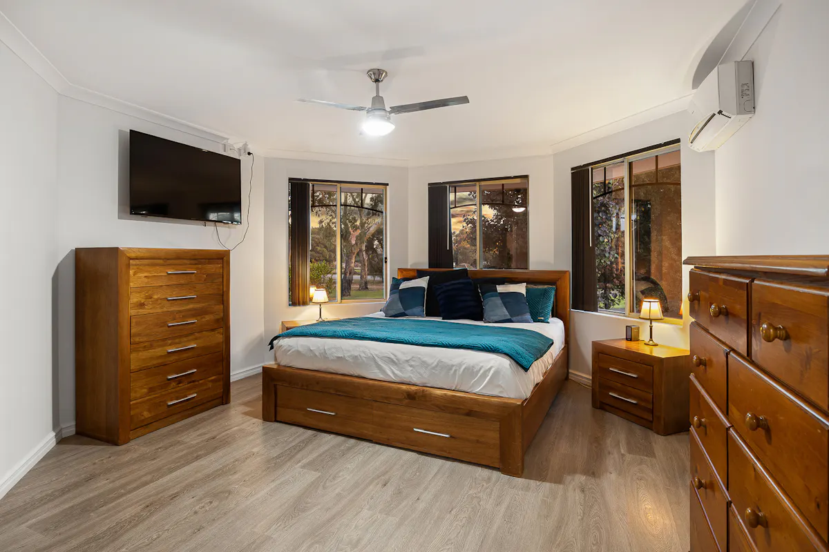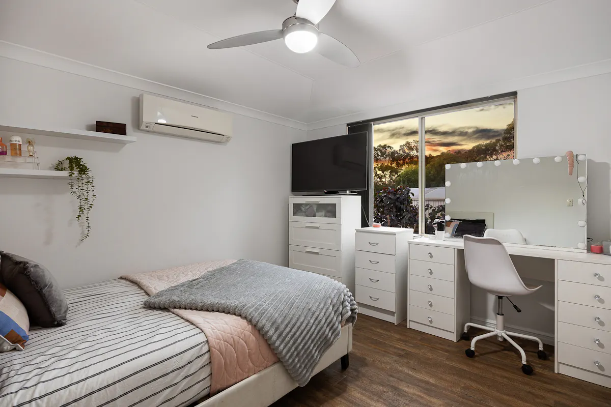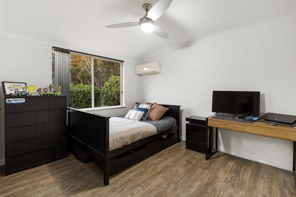 • 4 bedrooms with ceiling fans & split system air conditioning