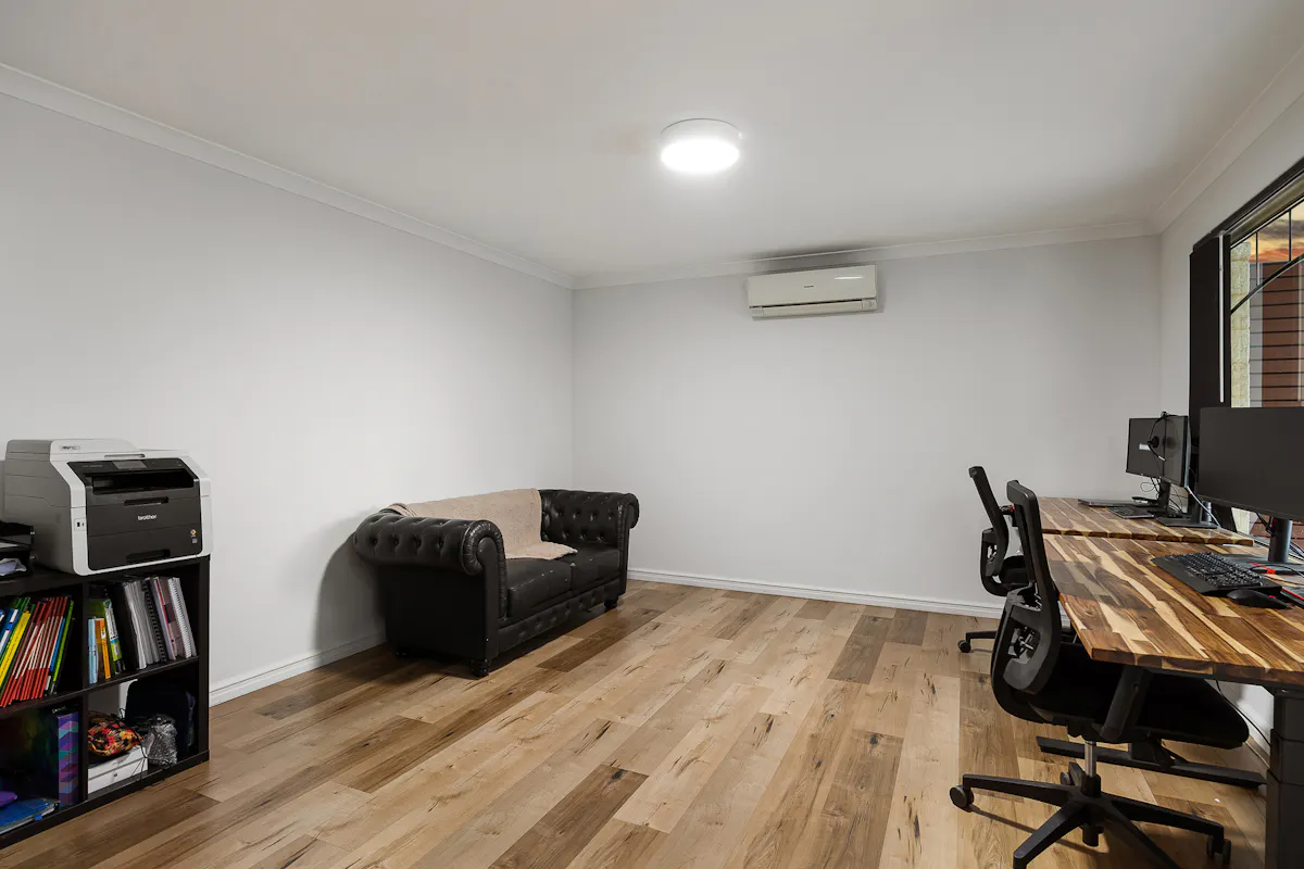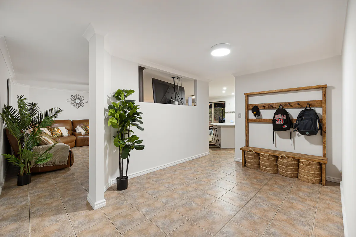 Flooring throughout has been carefully considered, with wood-look flooring to the front of the home and bedrooms, while tiled living areas provide durability and easy maintenance.